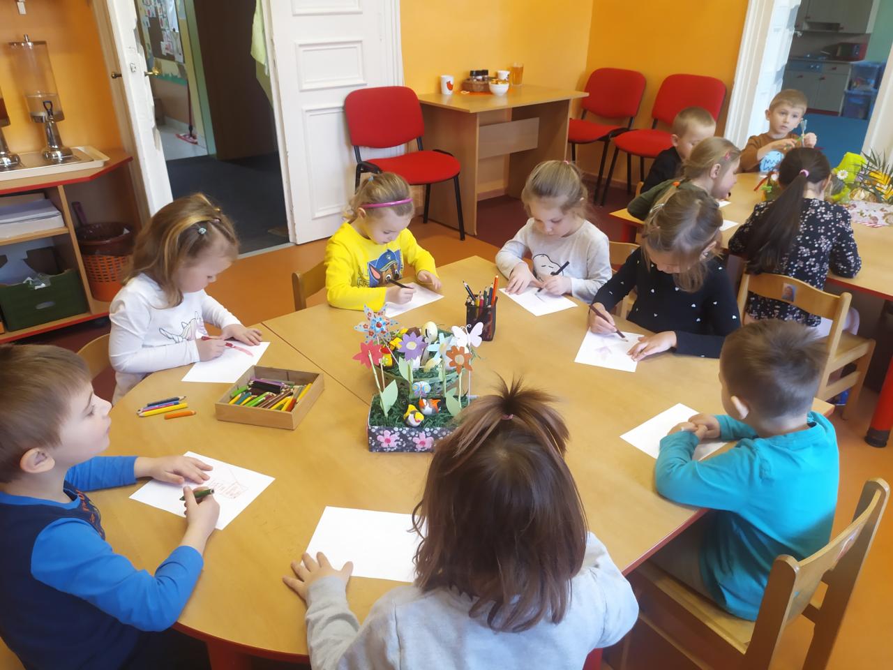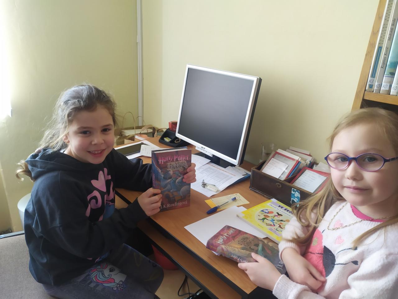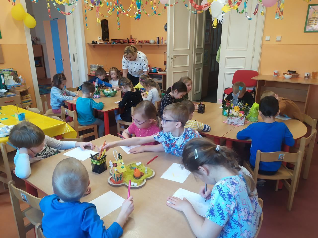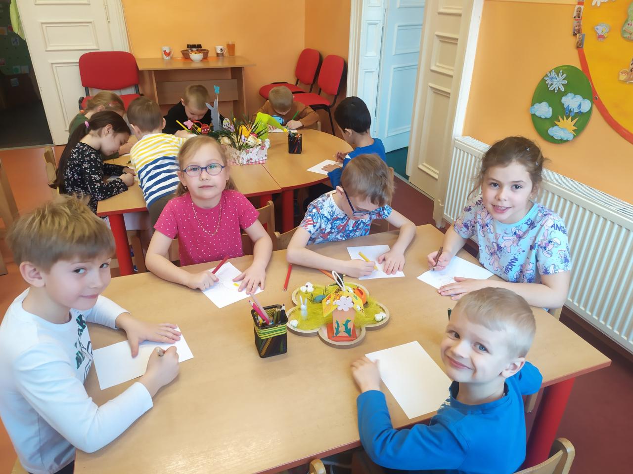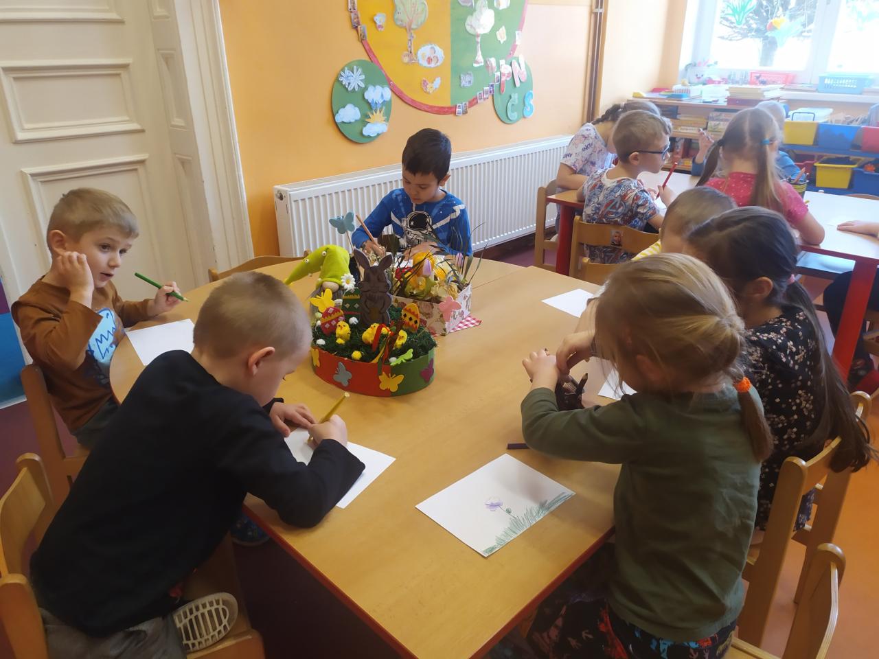 Jako poděkování děti nakreslily barevné jarní obrázky, které budou knihovnu zdobit.