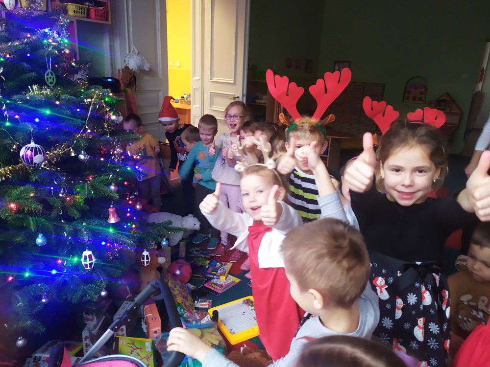 Děti zpívaly koledy, recitovaly vánoční básně a vyhlížely Ježíška. Najednou se z nebe začaly sypat vločky, bílá peříčka a zazvonil zvoneček. Už tu byl a naděloval. Pod stromečkem na děti čekalo spousta hraček, stavebnic, ale i pomůcek a výtvarného materiálu. Děkujeme Ježíšku!