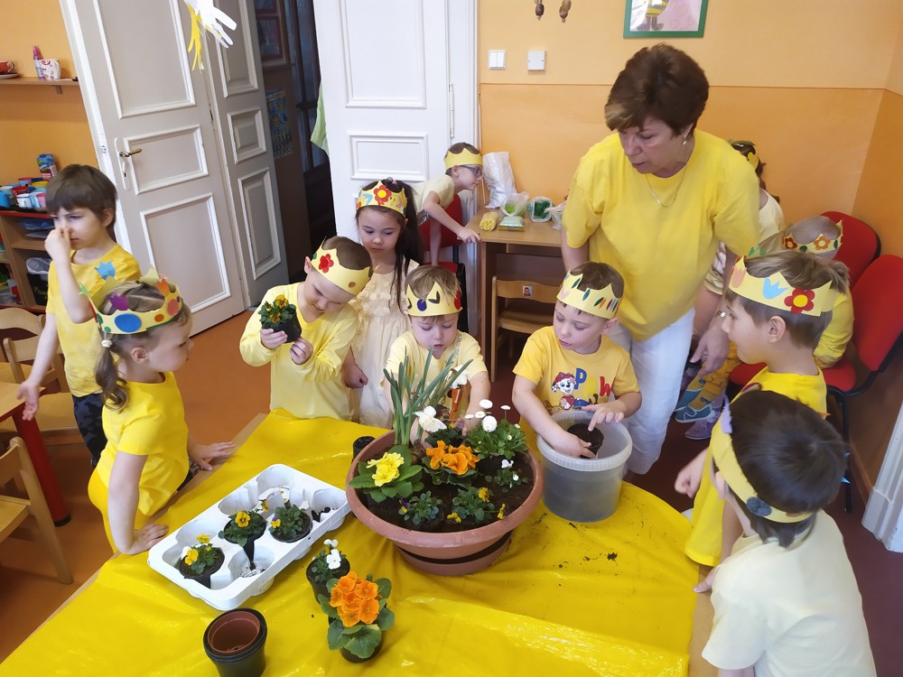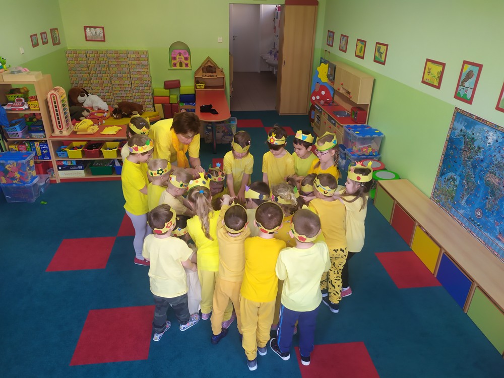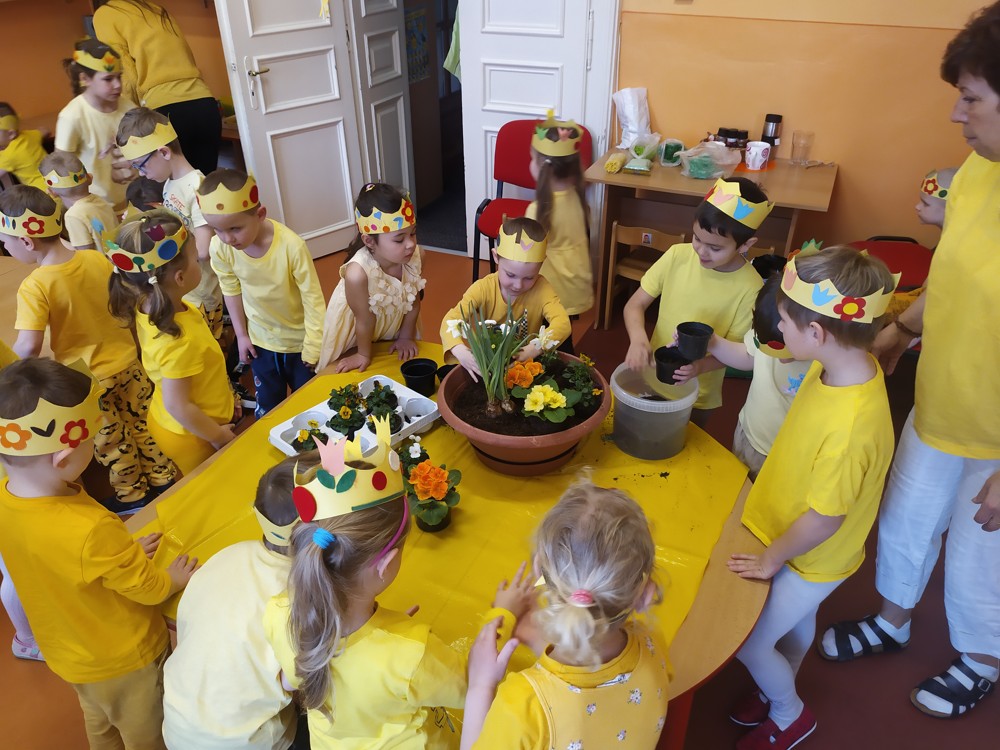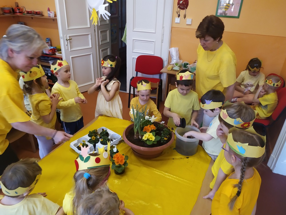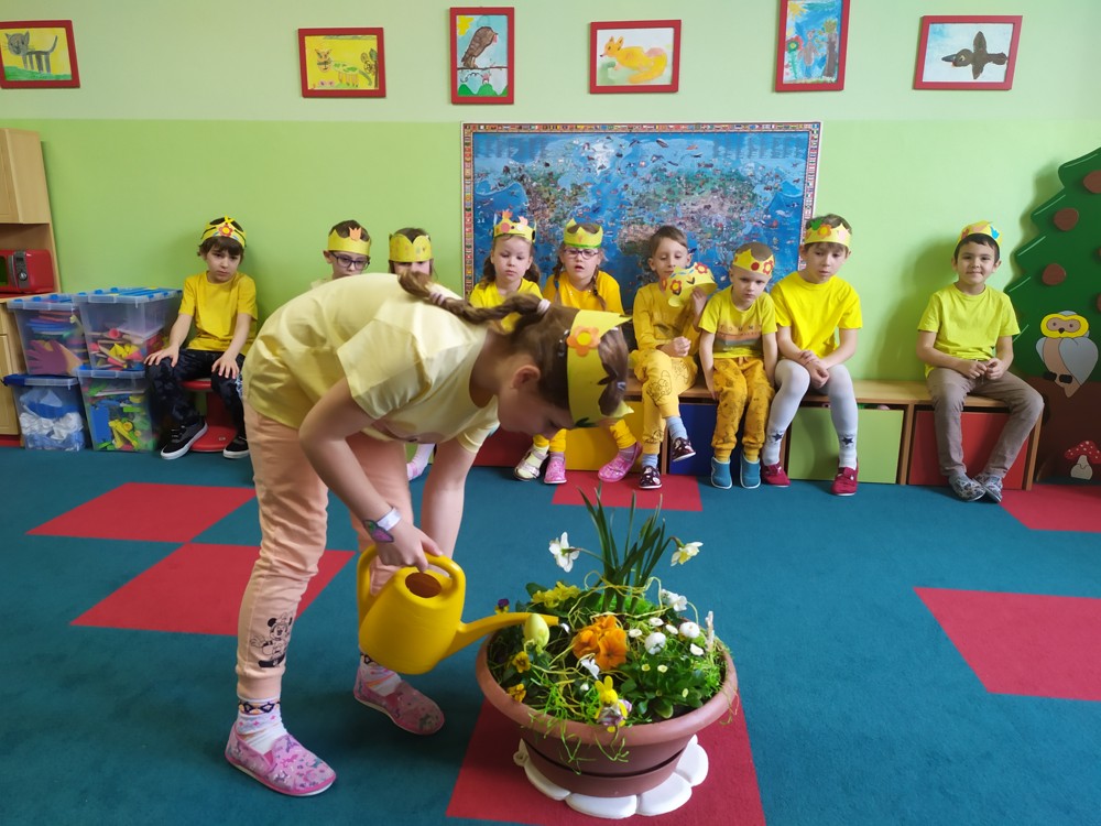 Do školky dnes děti přicházely ve žlutém oblečení a celé dopoledne veselou básničkou, písničkou i tanečkem vítaly jaro. Zasadily jarní zahrádku, ale musely ji uchránit před přízemním mrazíkem, který se nechtěl jen tak vzdát své vlády.