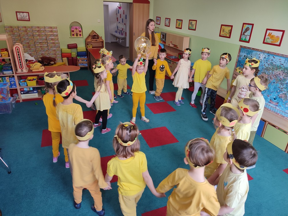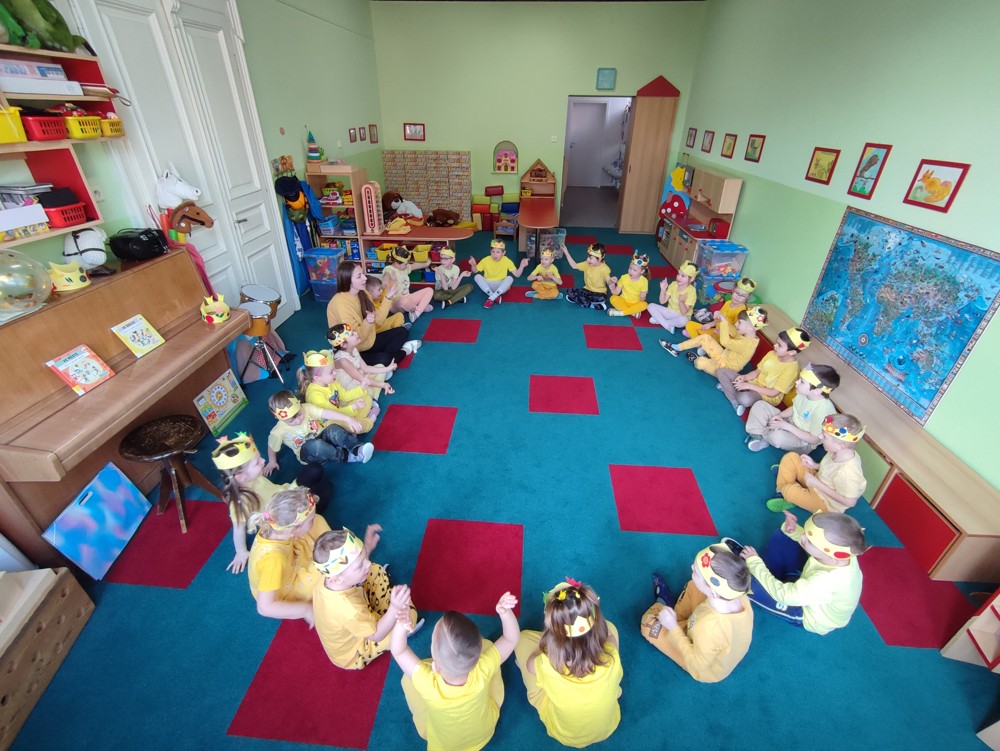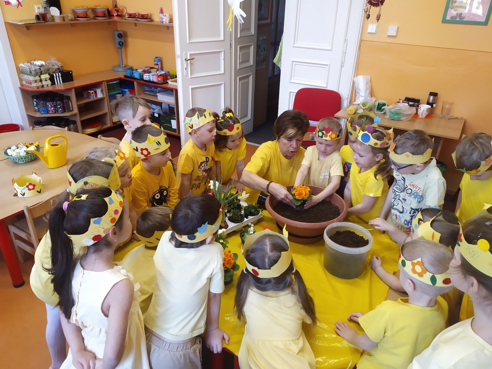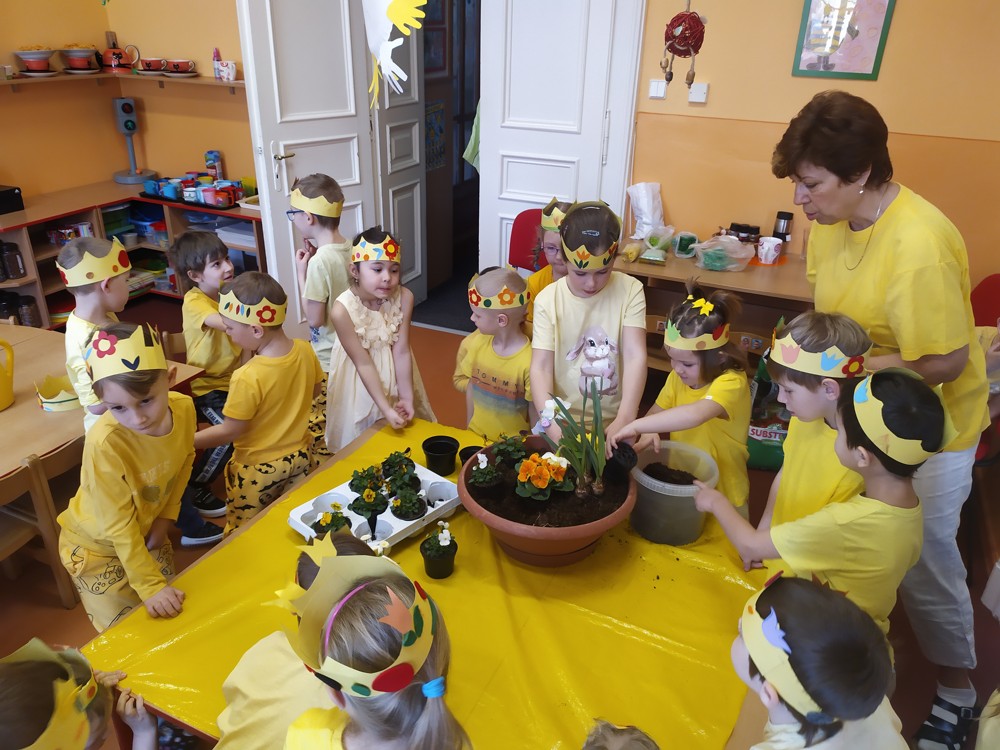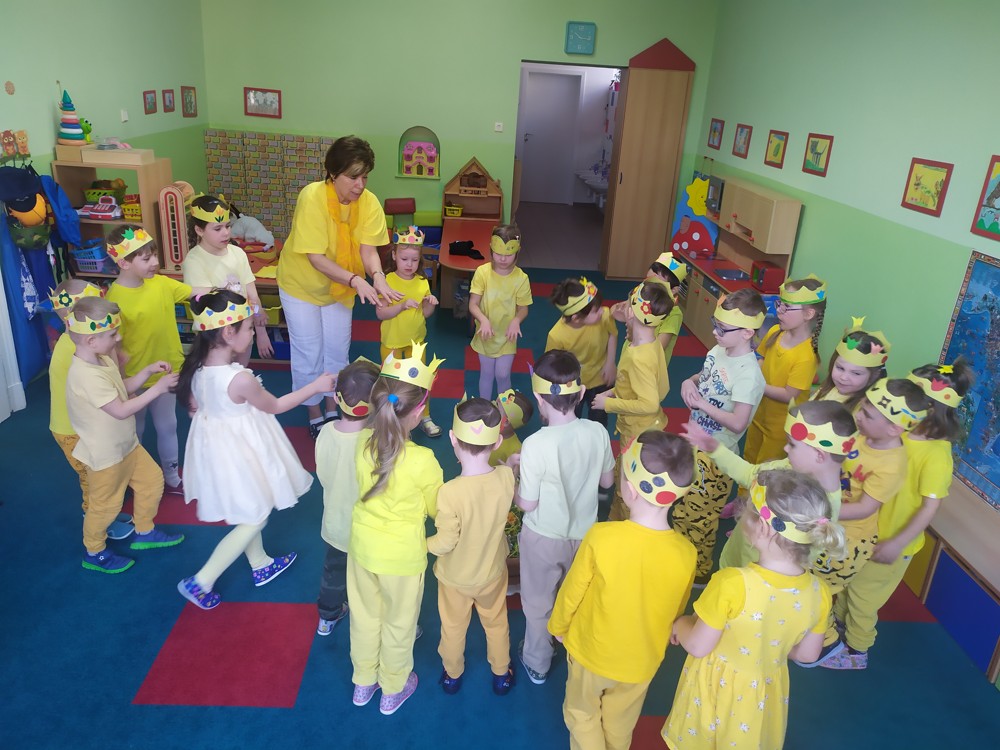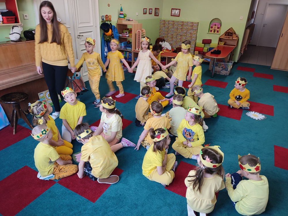 Do školky dnes děti přicházely ve žlutém oblečení a celé dopoledne veselou básničkou, písničkou i tanečkem vítaly jaro. Zasadily jarní zahrádku, ale musely ji uchránit před přízemním mrazíkem, který se nechtěl jen tak vzdát své vlády.