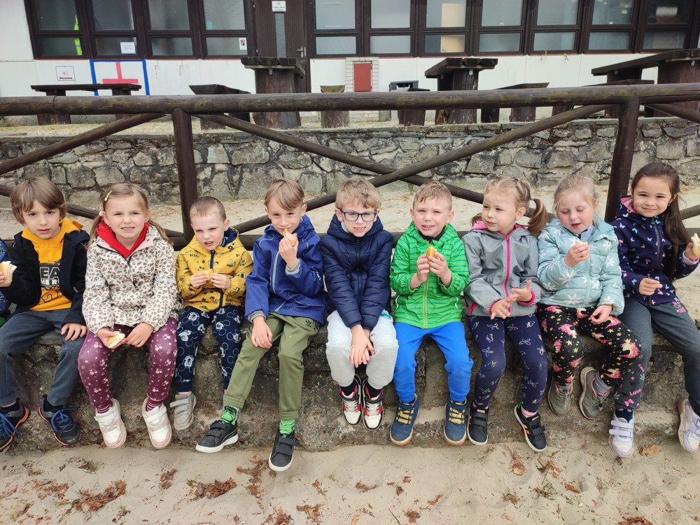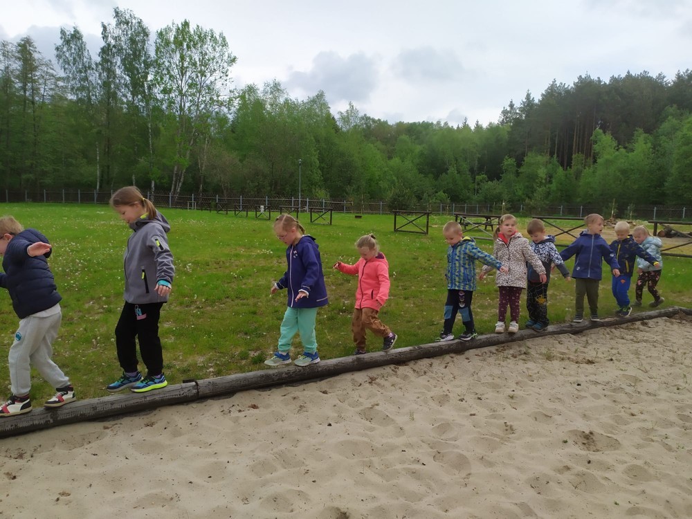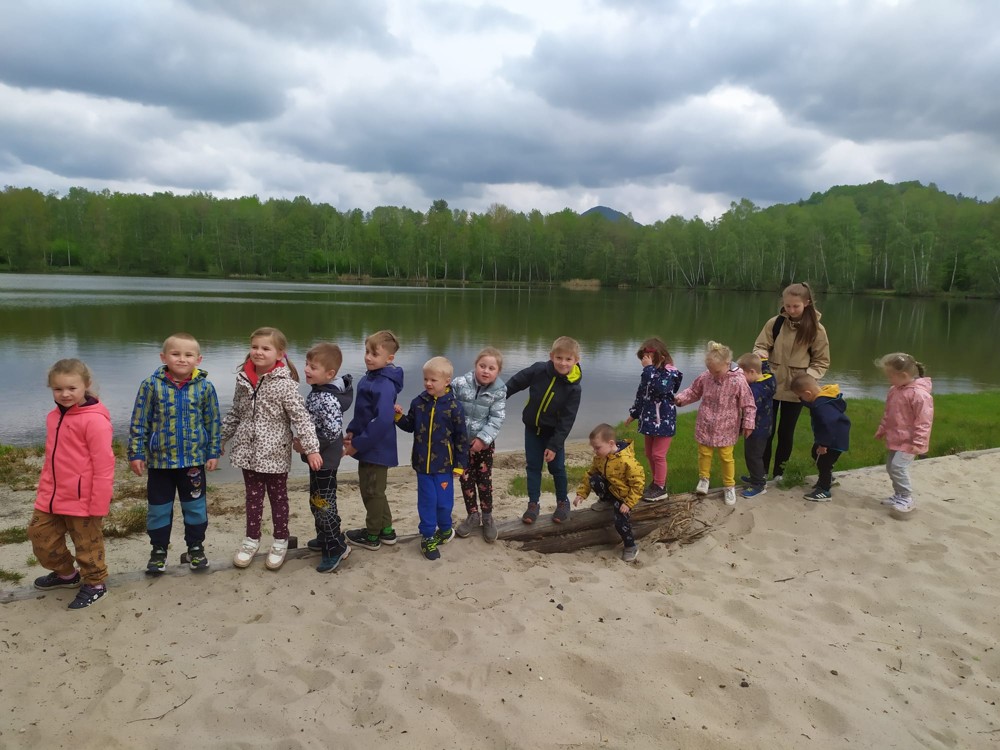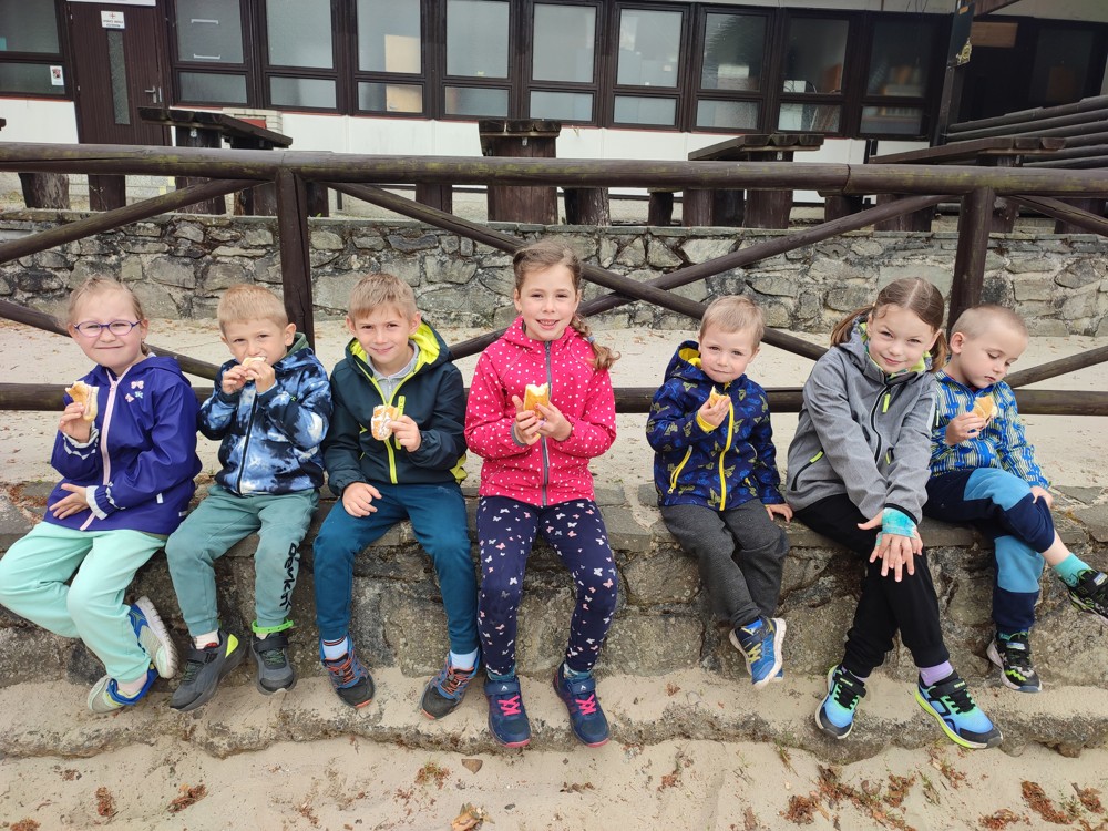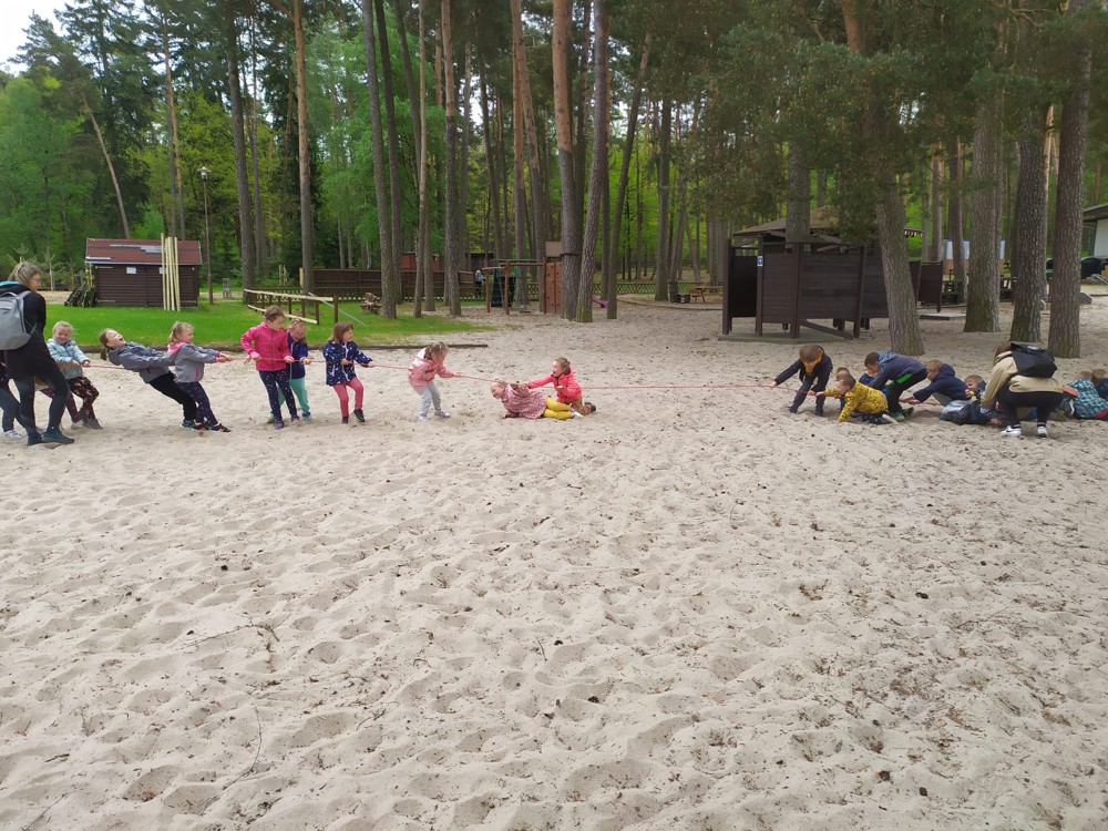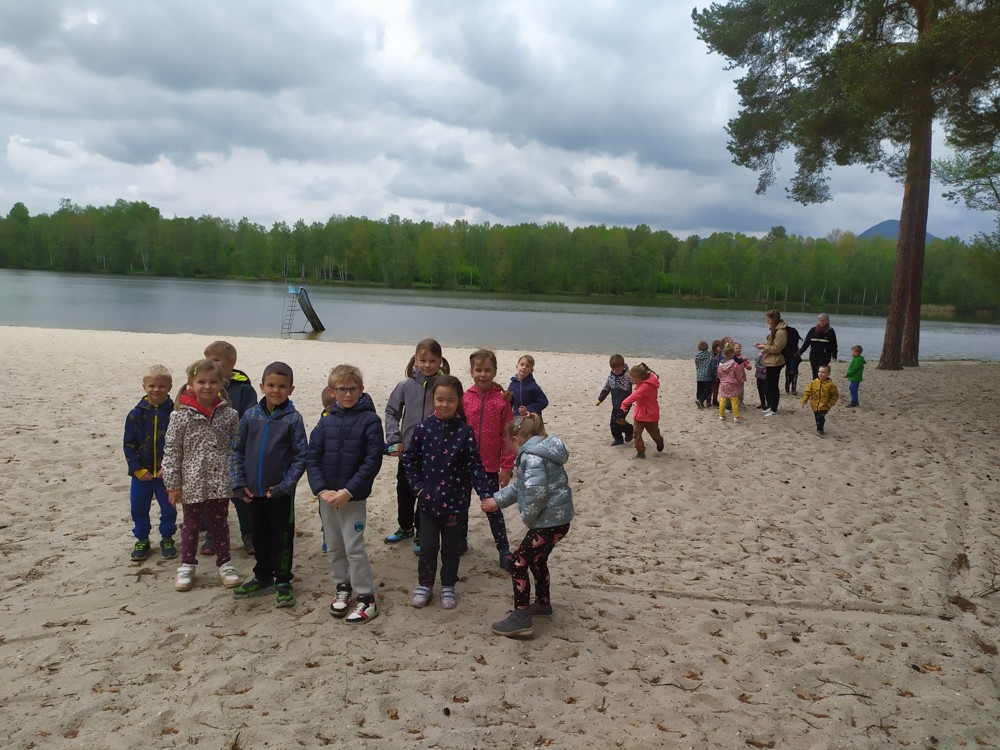 Dopoledne jsme u velikého rybníka, pro záchranu vodních bytostí, plnili spoustu úkolů. Děti hrály želví a čapí honěnou, zpívaly, přeskakovaly přes potok, přecházely nebezpečnou lávku, podbíhaly lano, kreslily vlny do písku a naučily se kouzelné zaklínadlo.