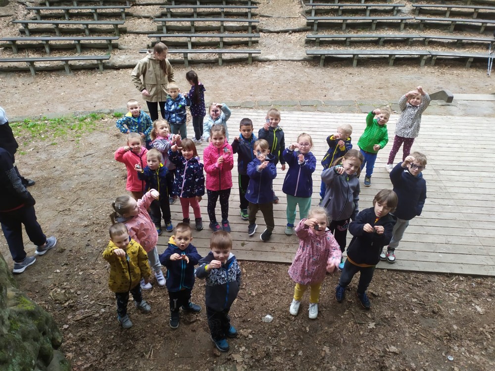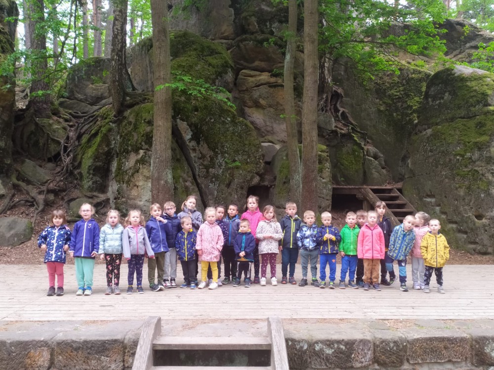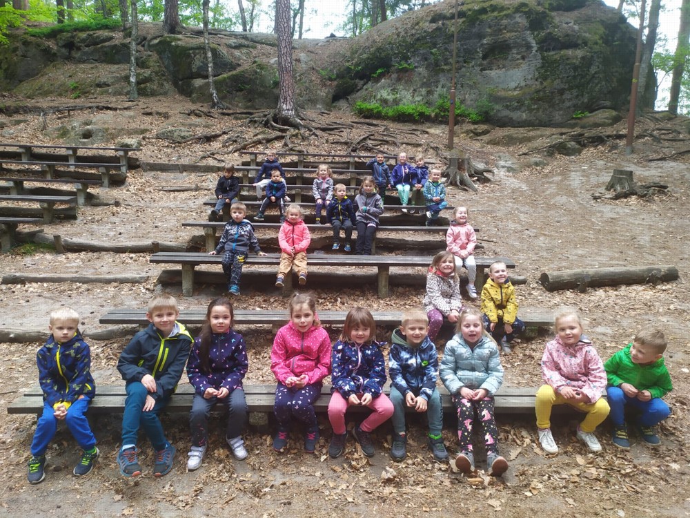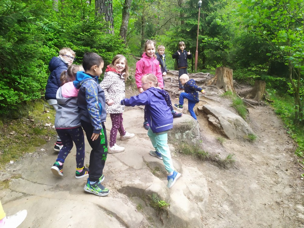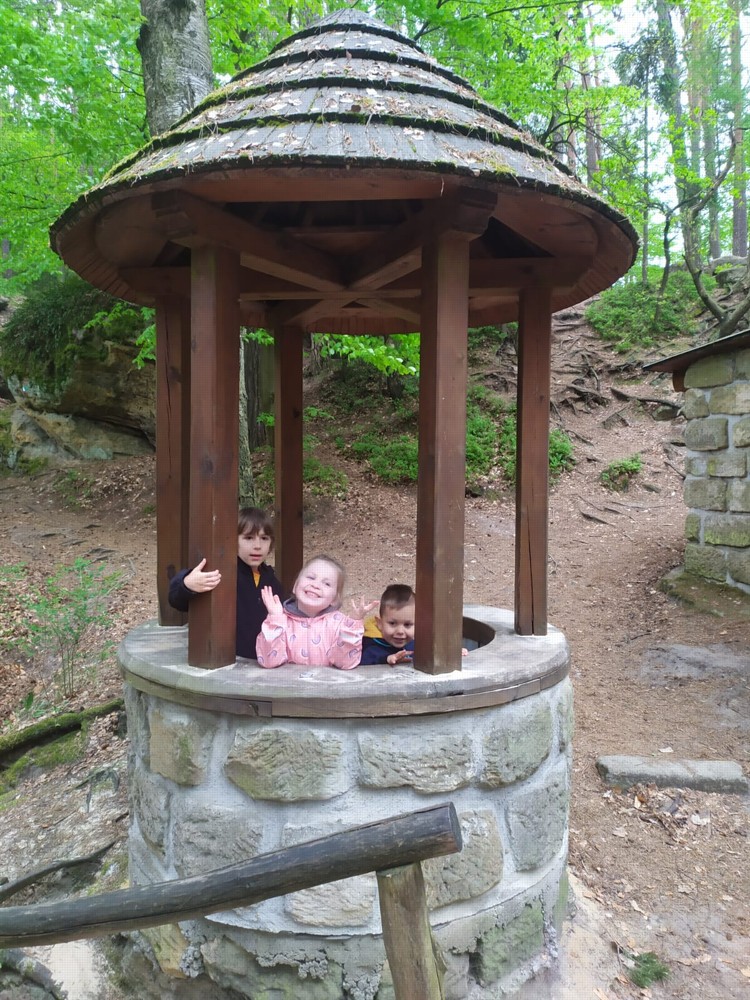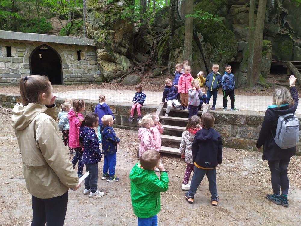 Odpoledne jsme si udělali výšlap do lesů a skal, až jsme došli do lesního divadla, kde děti svojí odvahou a zpěvem vysvobodily další začarované bytosti. Cesta nebyla snadná, ale všechny děti ji zvládly na výbornou a možná by ji daly i dvakrát.