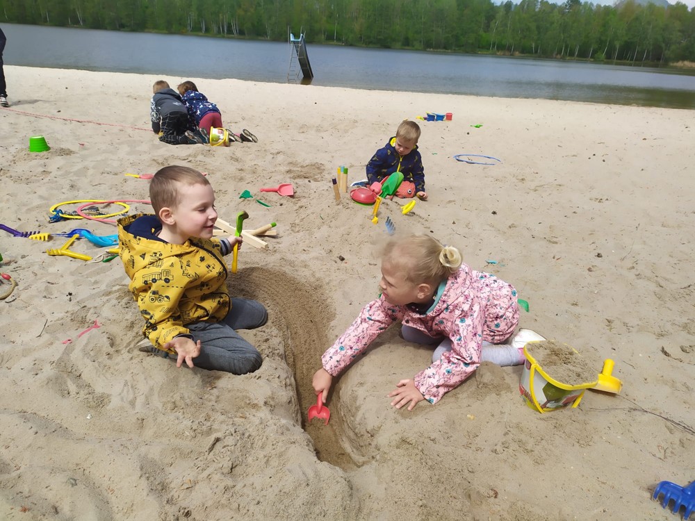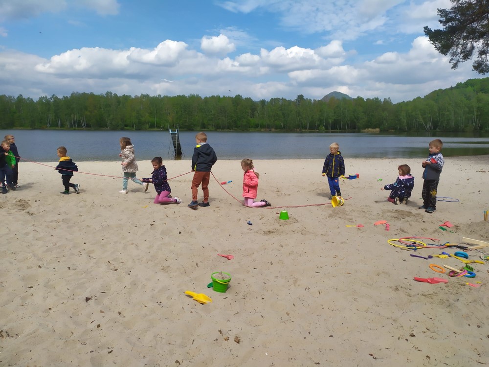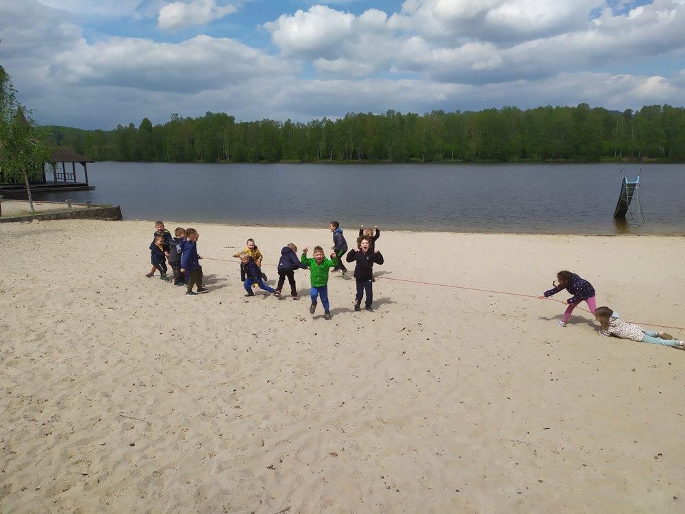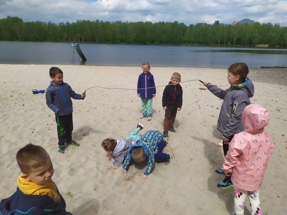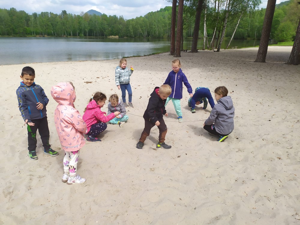 Svými znalostmi o přírodě, sportovními dovednosti, frotážováním kůry stromů i stavbami z písku dnes děti zachraňovaly další lesní strašidla. Při zpáteční cestě našly houbičky, které pro ně vyčaroval vládce lesních strašidel.
