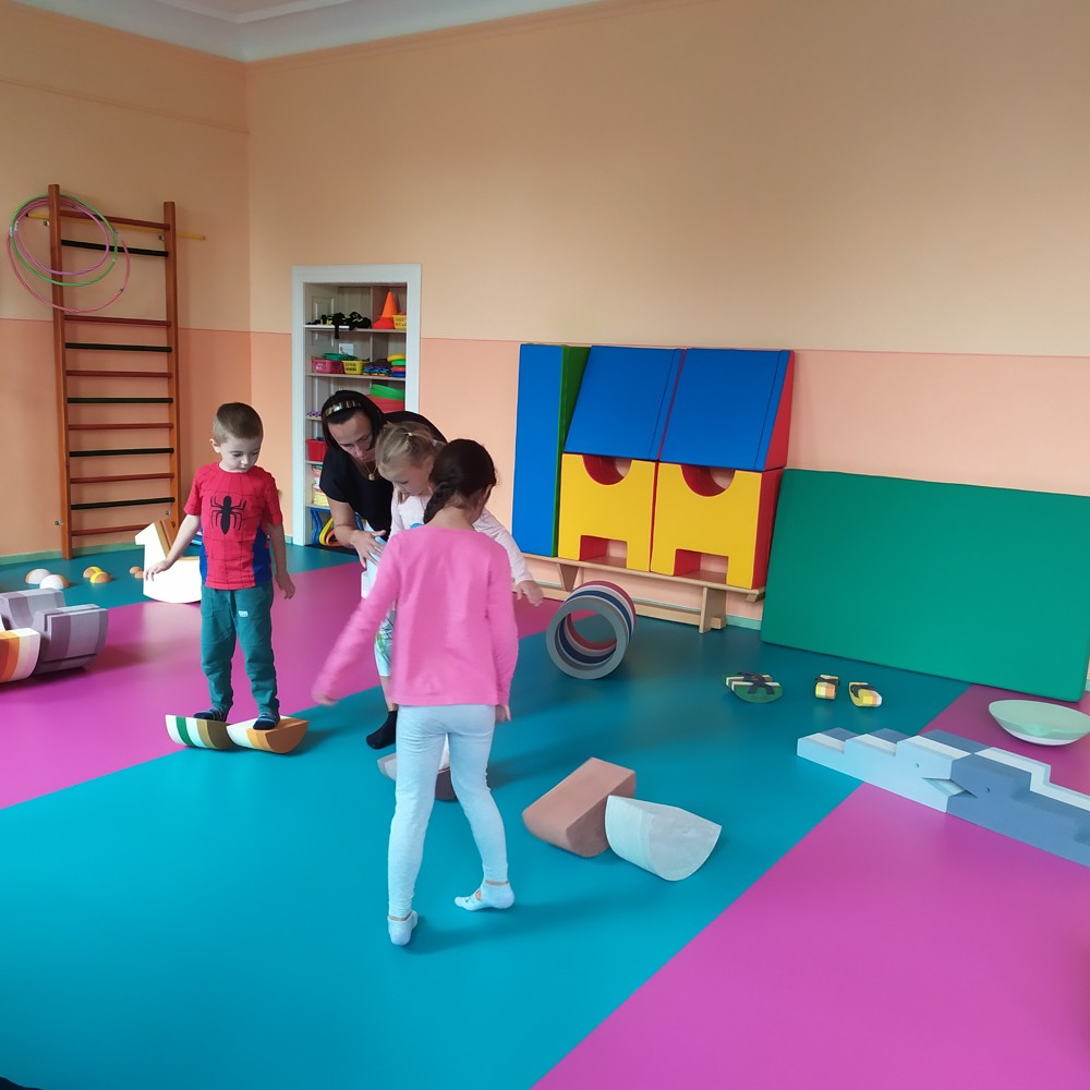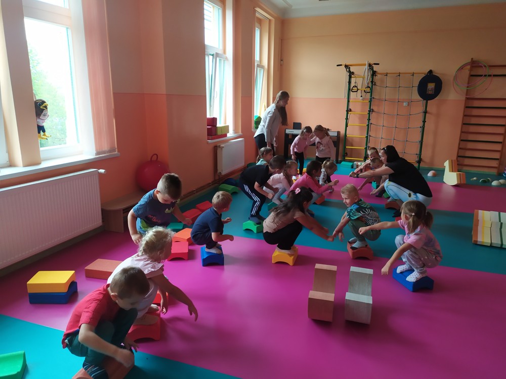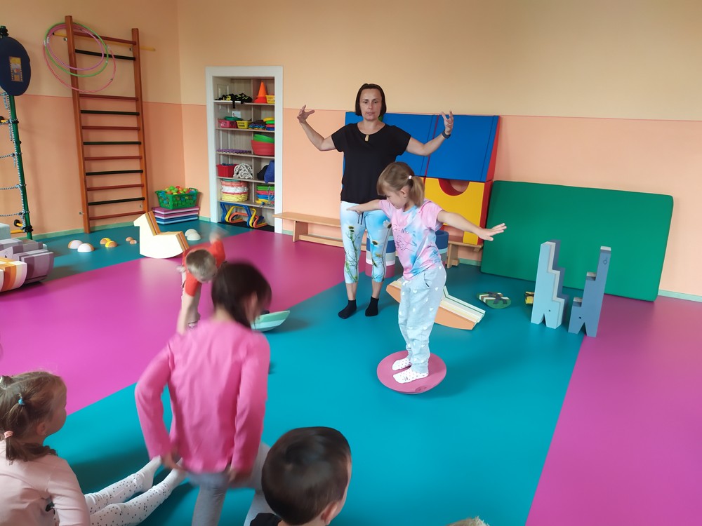Markéta za námi přijela do školky s pohybovým programem, který byl zaměřený na správné držení těla, posilování svalů, rovnováhy, ale i jen tak pro hraní a zábavu. Dětem se cvičení s pomůckami bObles moc líbilo a dopoledne s Markétou si užívaly