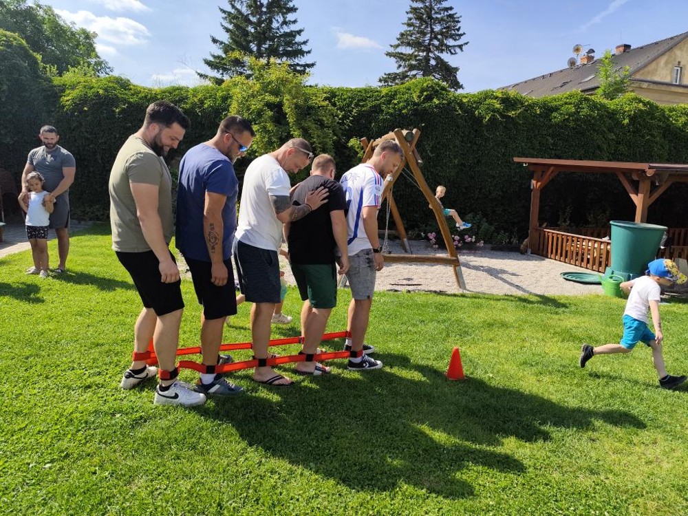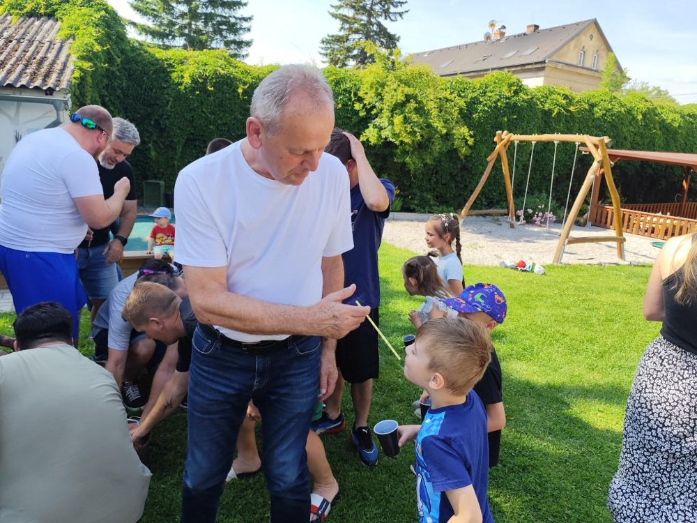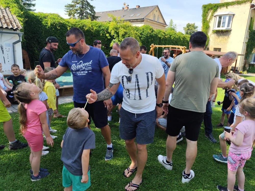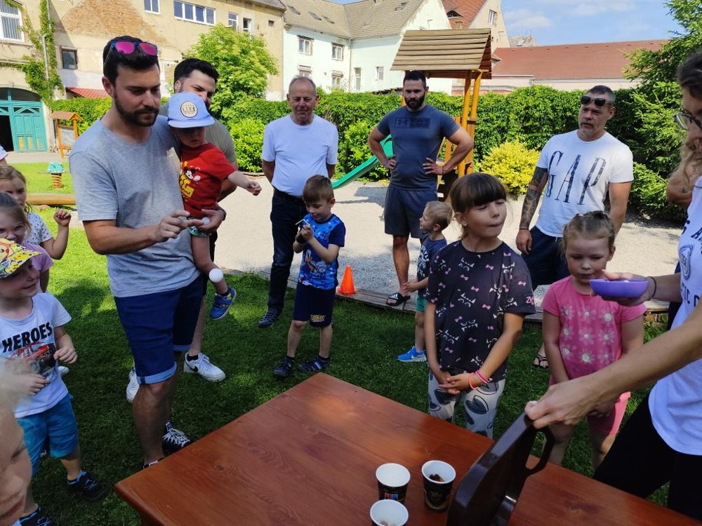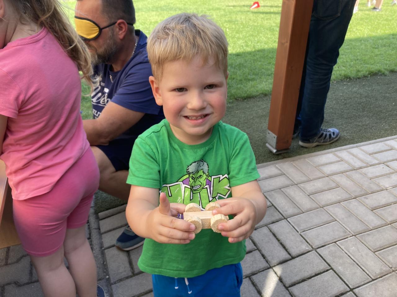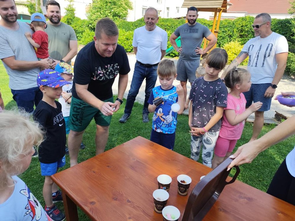 S našimi tatínky jsme oslavili jejich svátek. Odpoledne bylo plné smíchu, zábavy a dobré nálady. Tatínkové ukázali, že dokáží být pro své dítě dobrými parťáky nejen při sportu, ale i při výrobě dřevěných autíček, šroubování matiček, vzájemného občerstvování čerstvou vodou i opékání buřtíků.