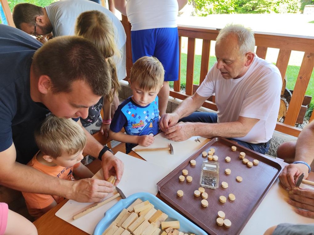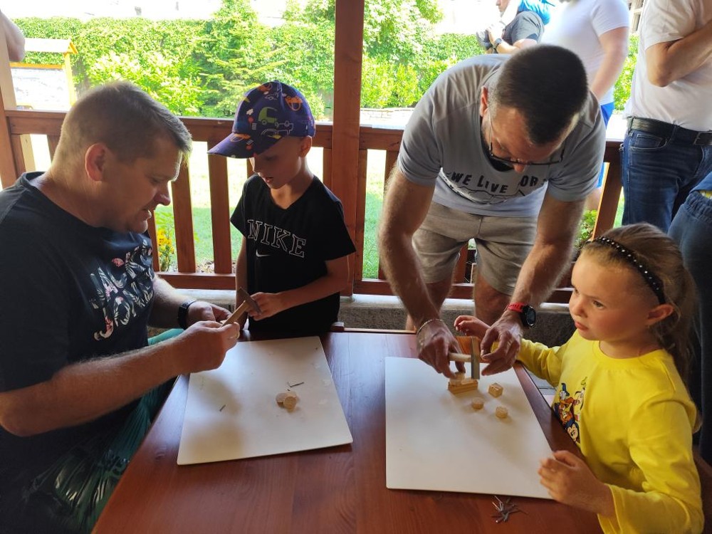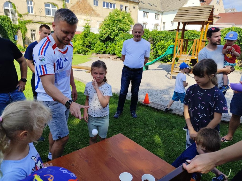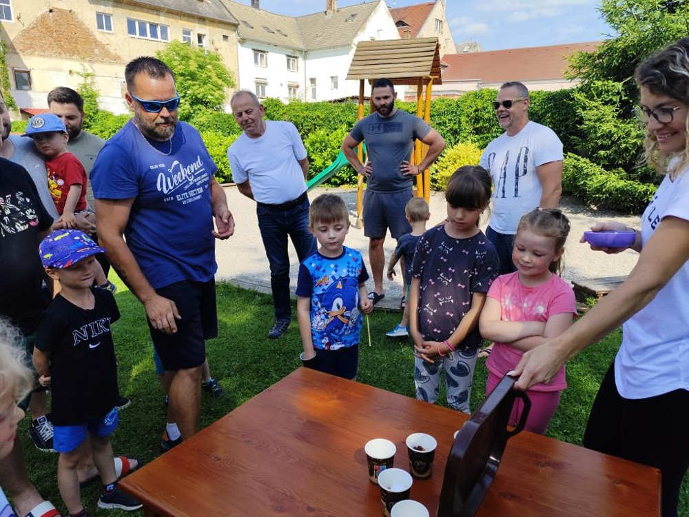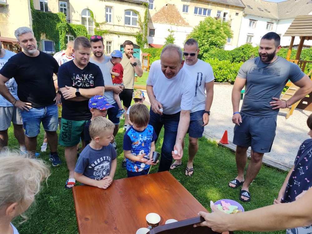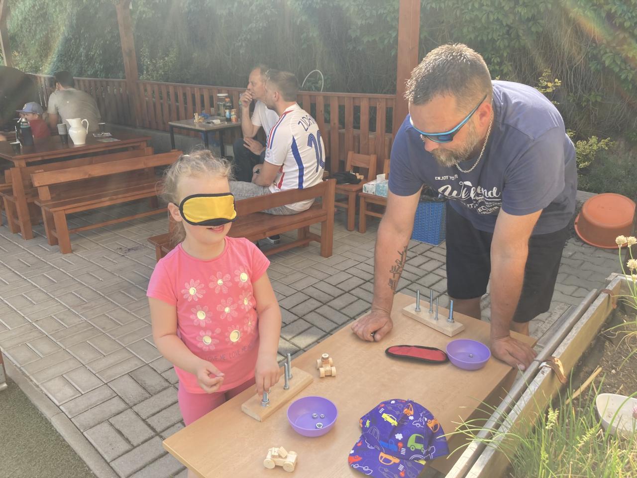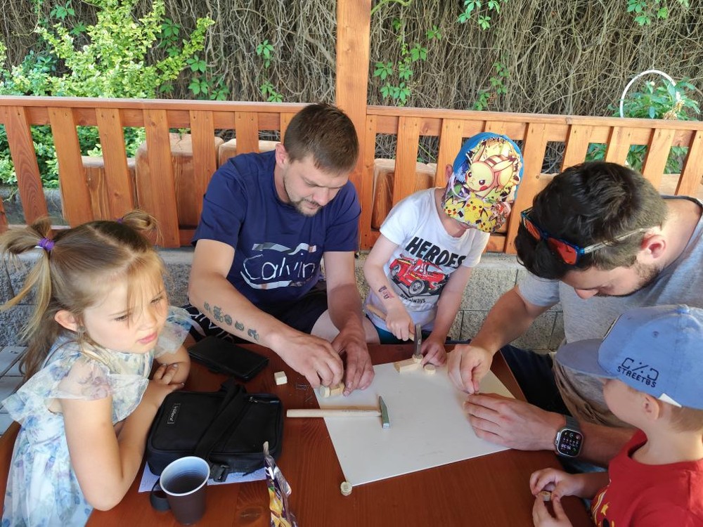 S našimi tatínky jsme oslavili jejich svátek. Odpoledne bylo plné smíchu, zábavy a dobré nálady. Tatínkové ukázali, že dokáží být pro své dítě dobrými parťáky nejen při sportu, ale i při výrobě dřevěných autíček, šroubování matiček, vzájemného občerstvování čerstvou vodou i opékání buřtíků.