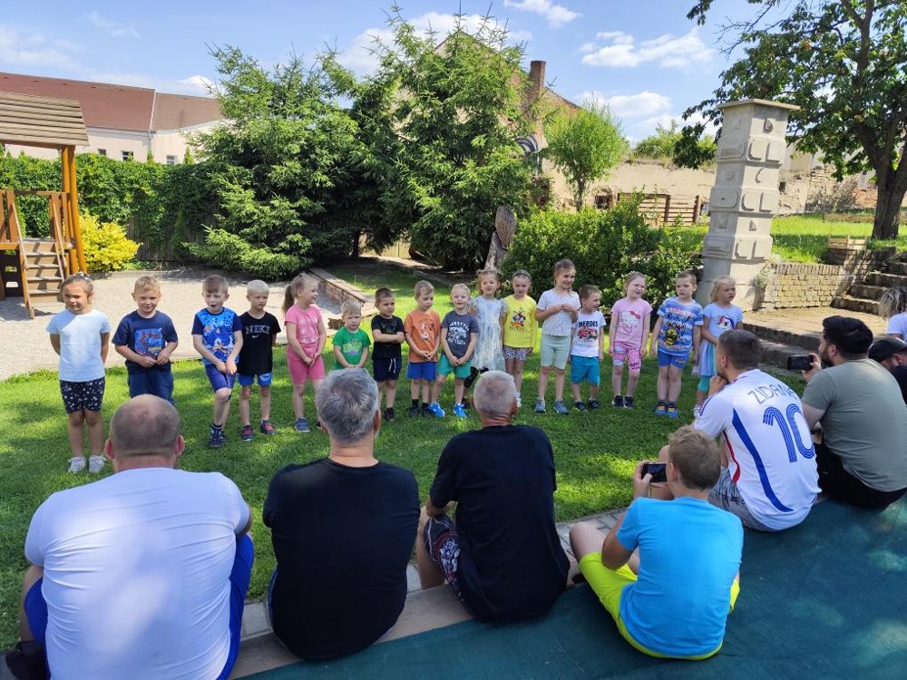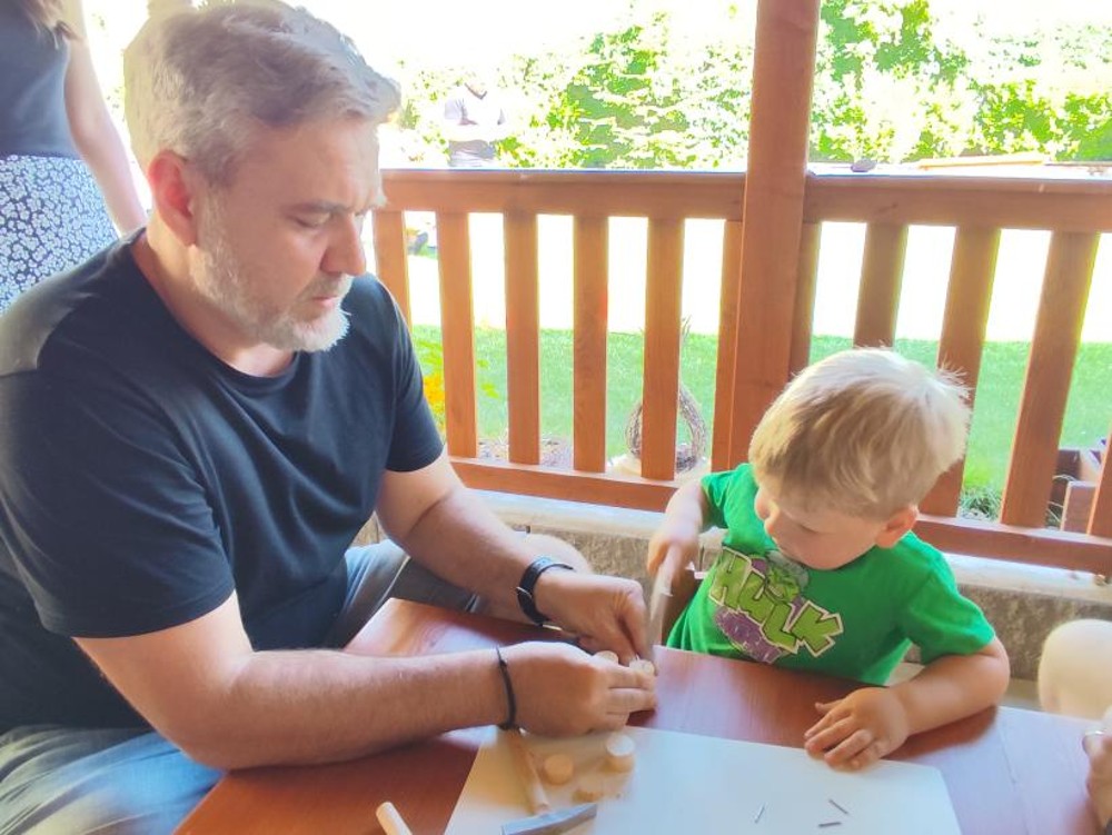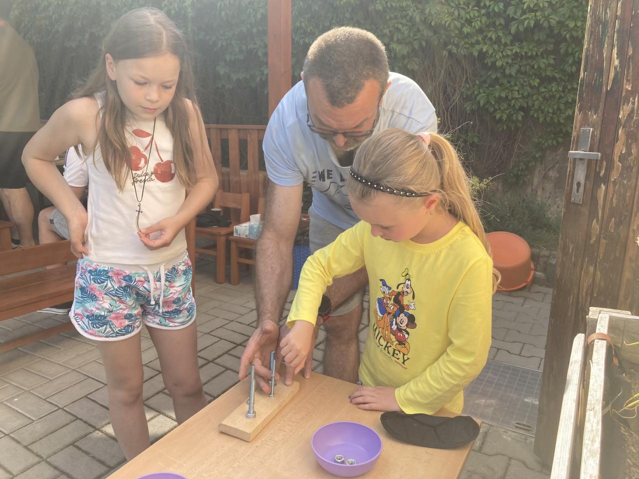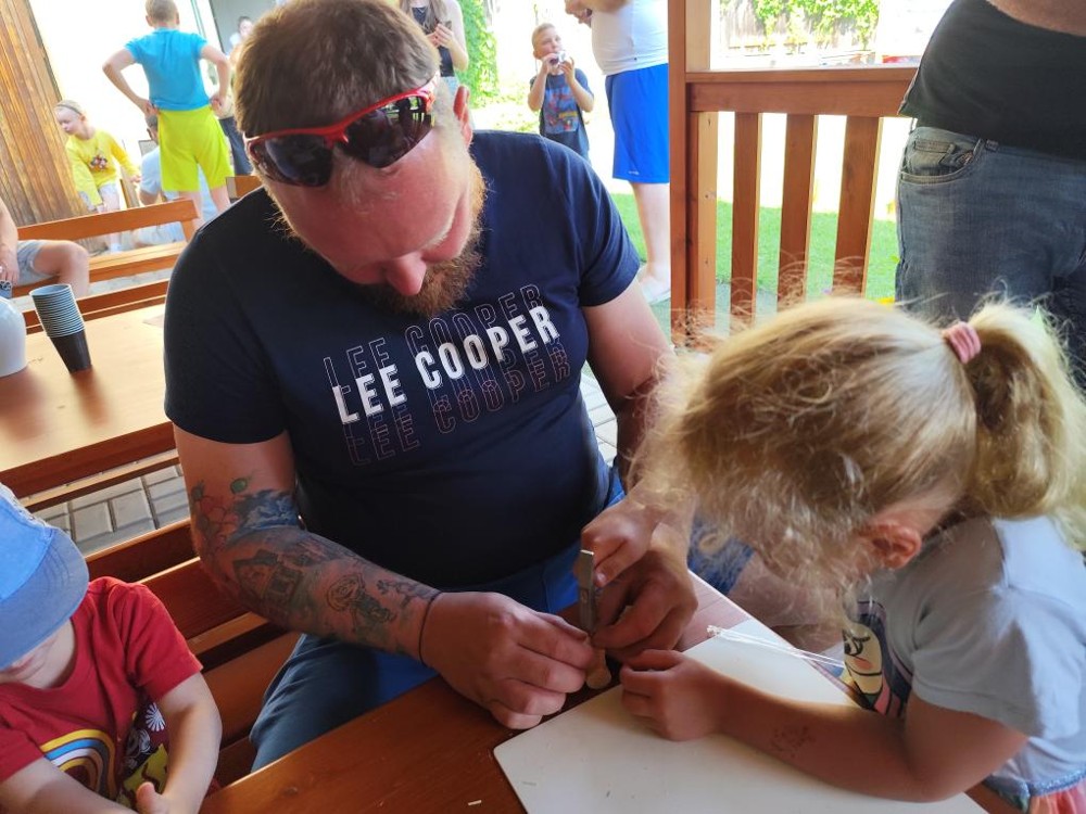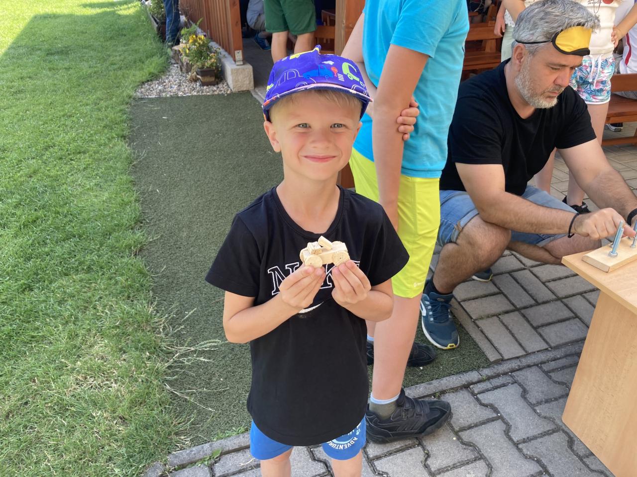S našimi tatínky jsme oslavili jejich svátek. Odpoledne bylo plné smíchu, zábavy a dobré nálady. Tatínkové ukázali, že dokáží být pro své dítě dobrými parťáky nejen při sportu, ale i při výrobě dřevěných autíček, šroubování matiček, vzájemného občerstvování čerstvou vodou i opékání buřtíků.