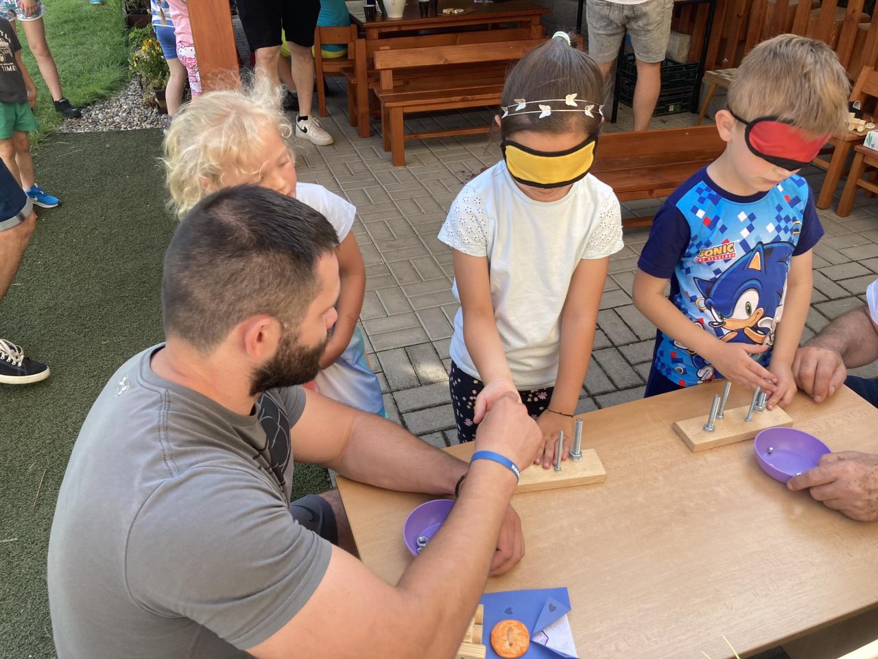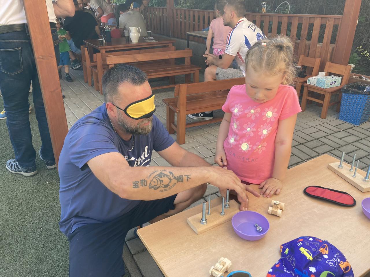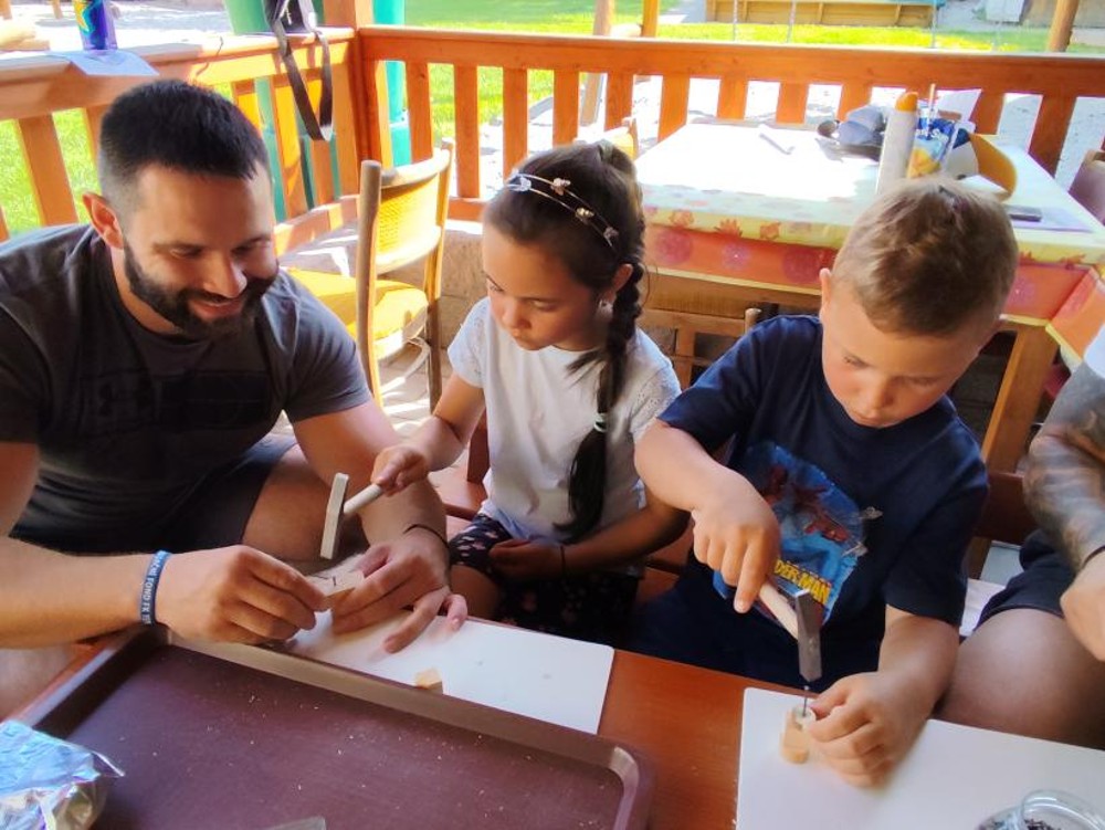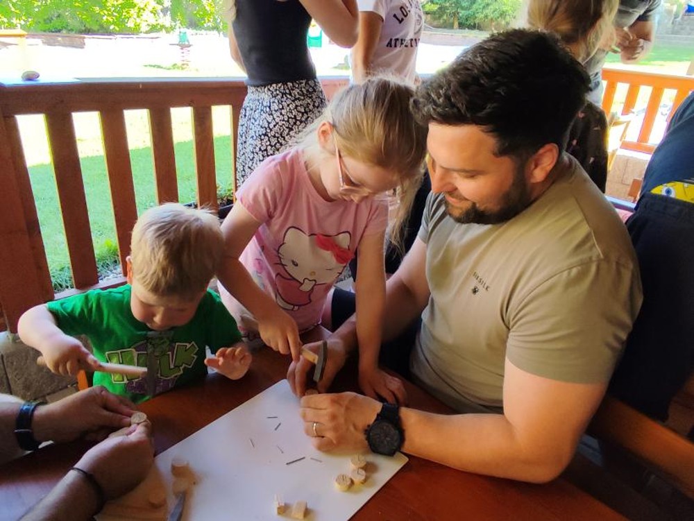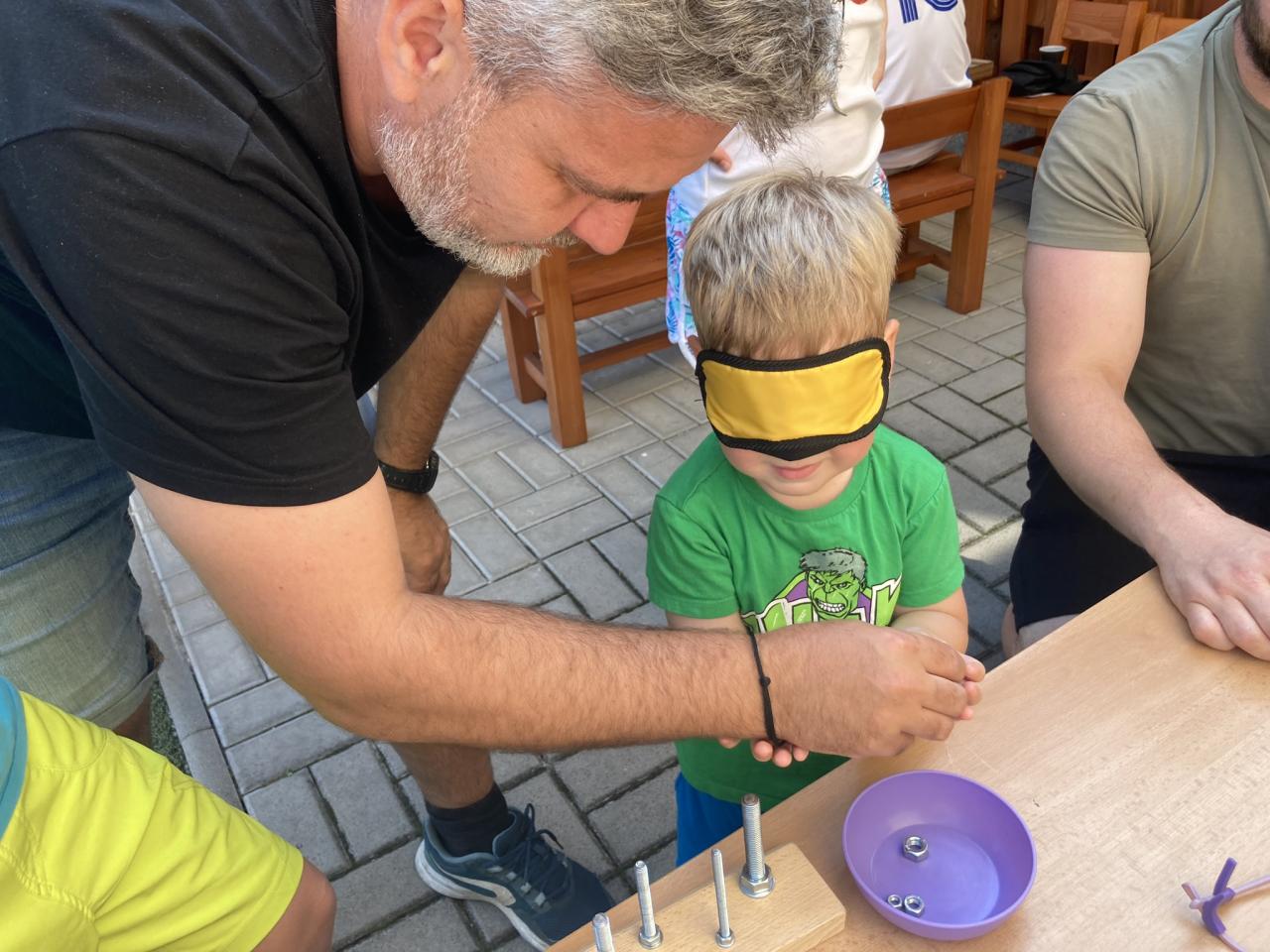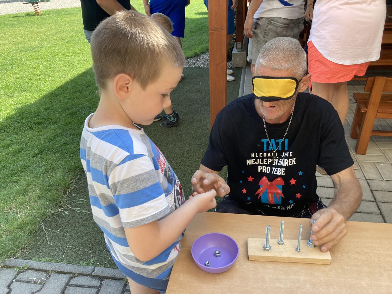 S našimi tatínky jsme oslavili jejich svátek. Odpoledne bylo plné smíchu, zábavy a dobré nálady. Tatínkové ukázali, že dokáží být pro své dítě dobrými parťáky nejen při sportu, ale i při výrobě dřevěných autíček, šroubování matiček, vzájemného občerstvování čerstvou vodou i opékání buřtíků.
