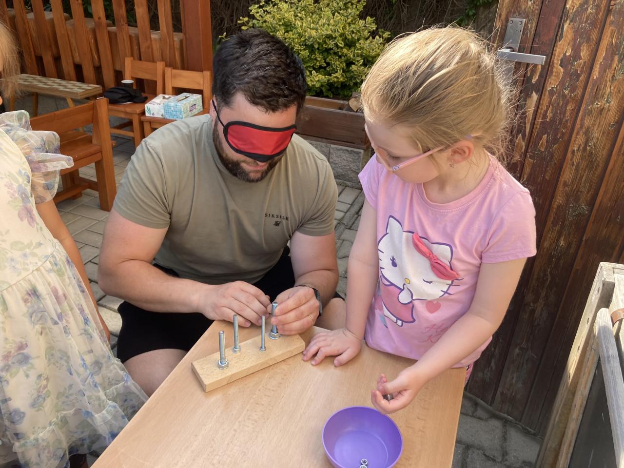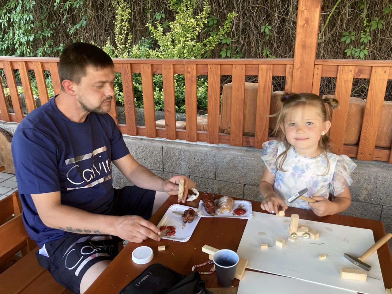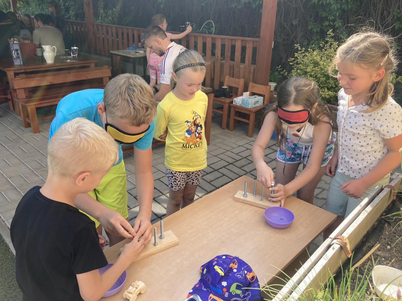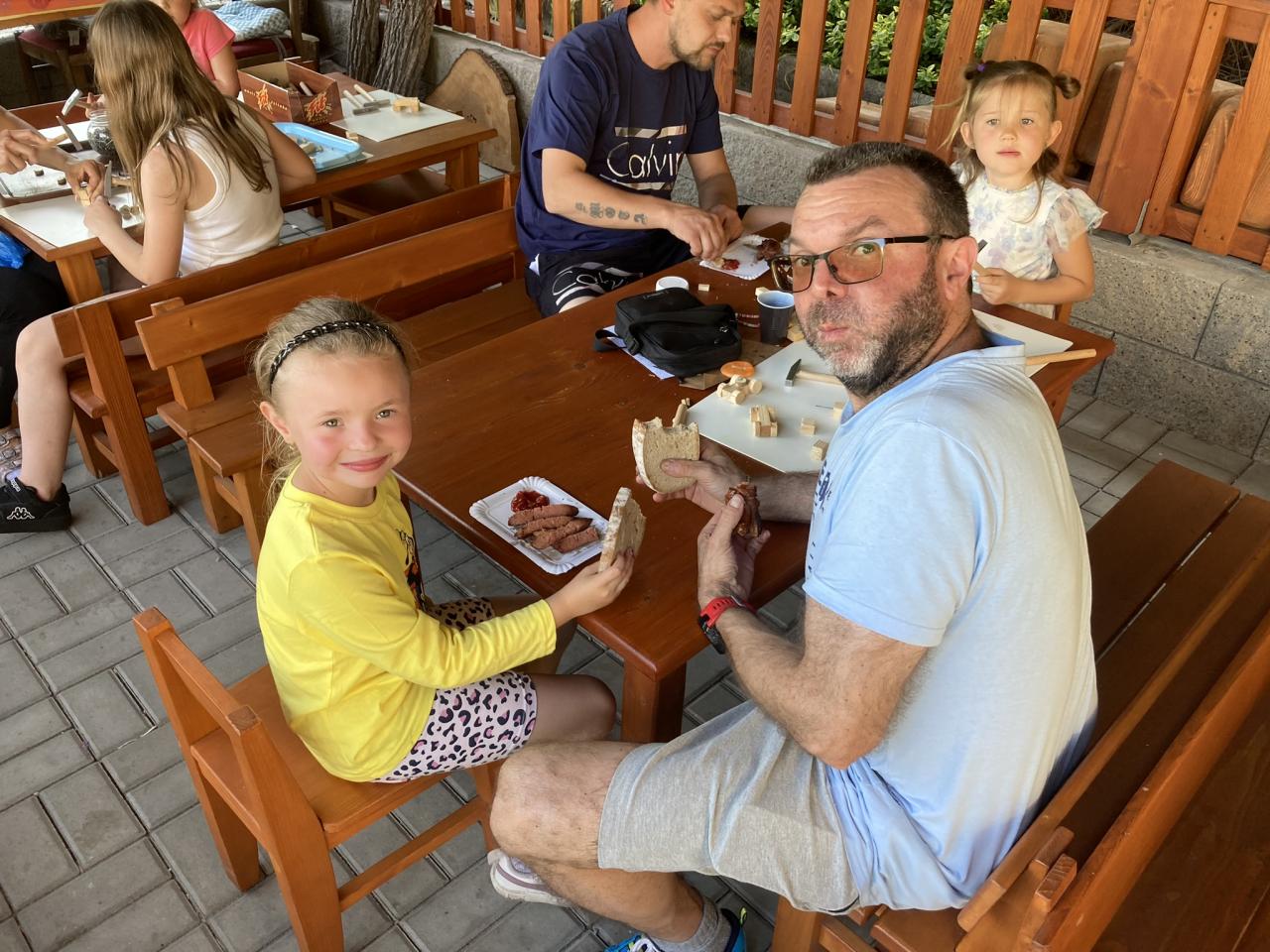 S našimi tatínky jsme oslavili jejich svátek. Odpoledne bylo plné smíchu, zábavy a dobré nálady. Tatínkové ukázali, že dokáží být pro své dítě dobrými parťáky nejen při sportu, ale i při výrobě dřevěných autíček, šroubování matiček, vzájemného občerstvování čerstvou vodou i opékání buřtíků.