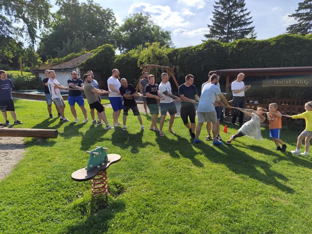 Moc je chválíme, že v sobě potlačili přirozenou touhu po vítězství při přetahování lanem a po dlouhém a vyrovnaném boji je mohly děti porazit.