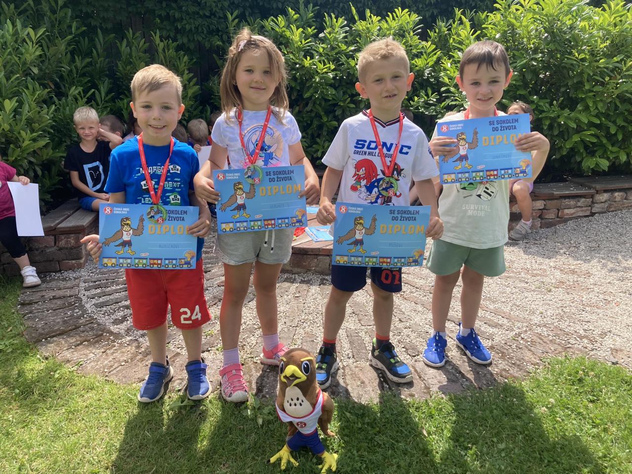 Naše školka se i letos zapojila do projektu „Se Sokolem do života“. Děti celý rok sportovaly a plnily různé úkoly Sokolíka Pepíka a jeho kamarádů. Za všechny sportovní výkony byly odměněny diplomem, medailí a malým dárečkem.