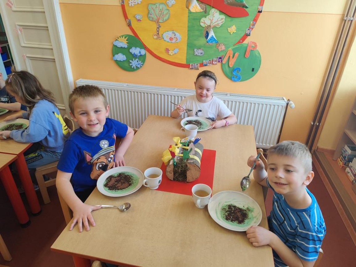 A protože je dnes ZELENÝ ČTVRTEK, tak si děti pochutnávaly na výborné jáhlové kaši.