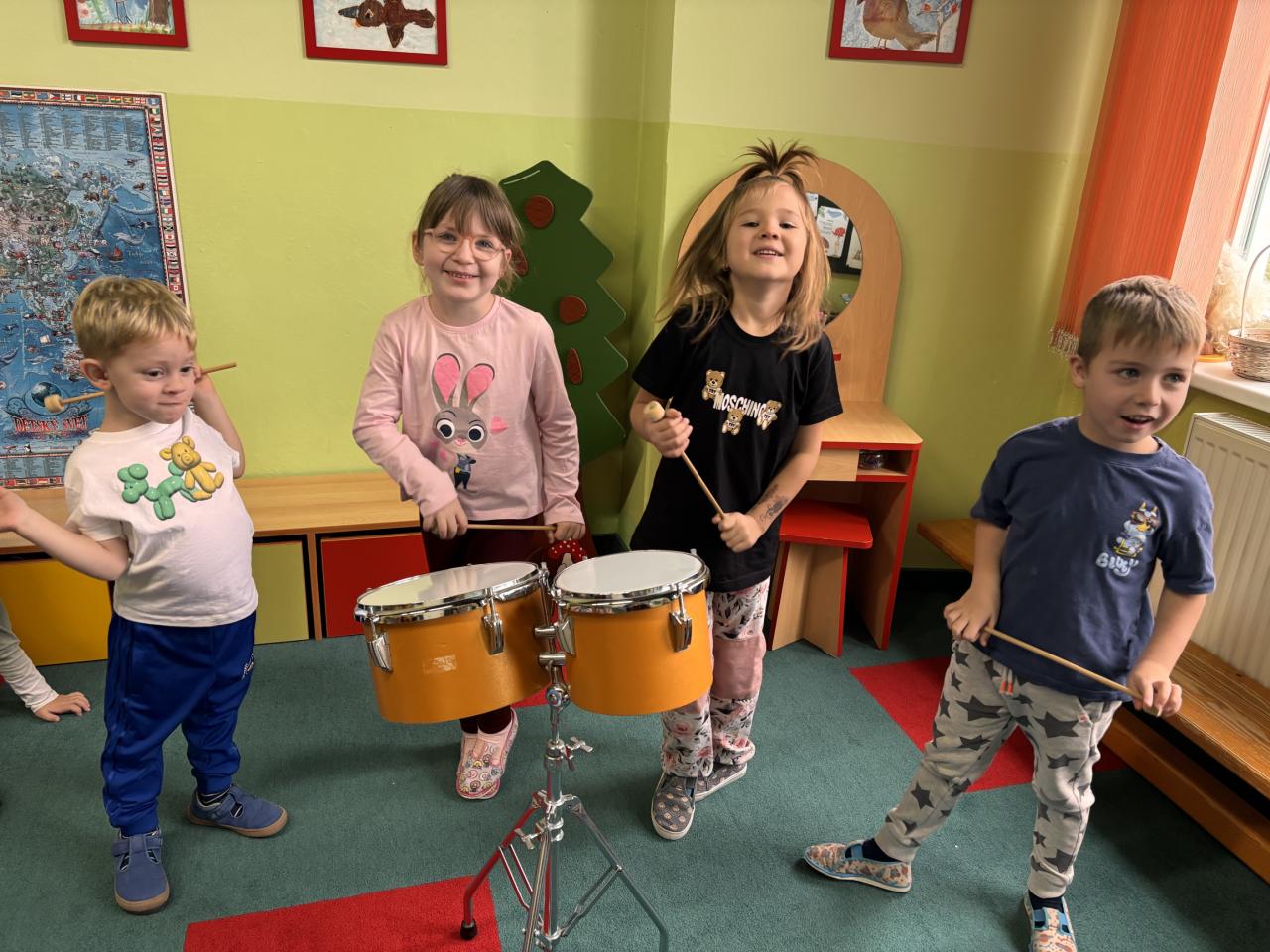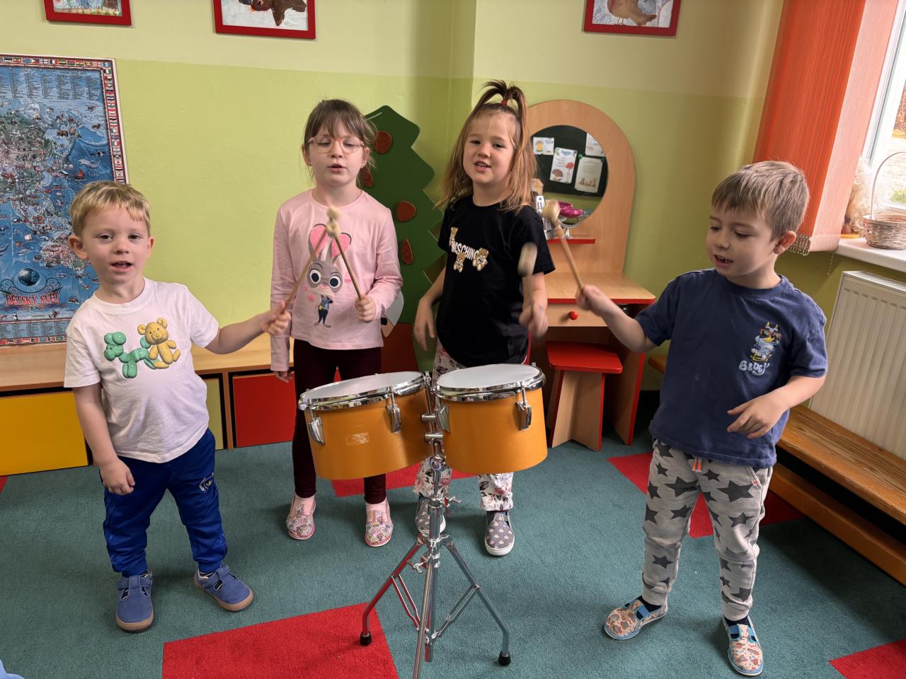 Společně s dětmi jsme se zapojili do celorepublikového bubnování proti násilí. Celý týden jsme se zaměřili na emoce, jejich popis, vyjádření, a skrze příběh o Táďovi přiblížili dětem toto téma.