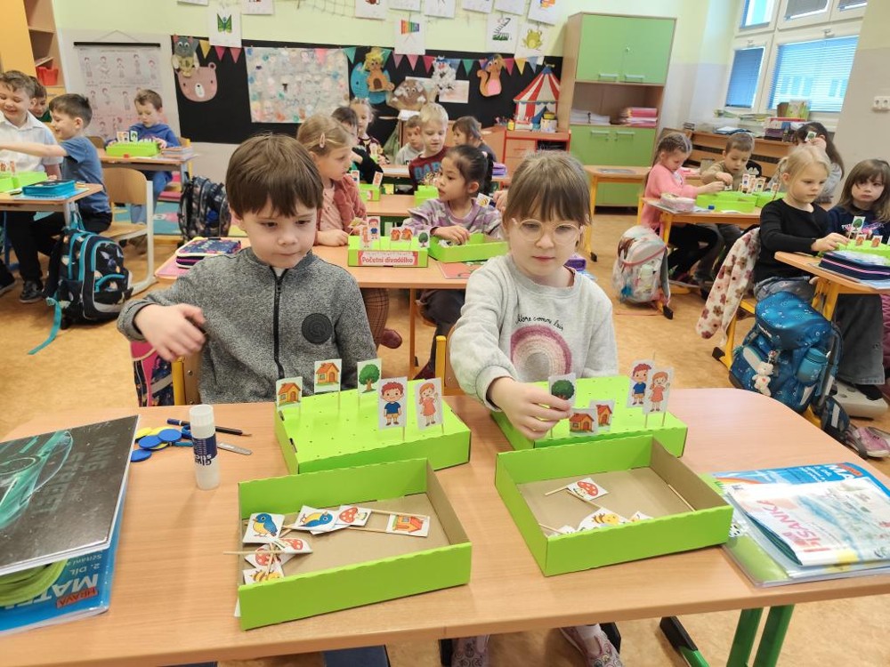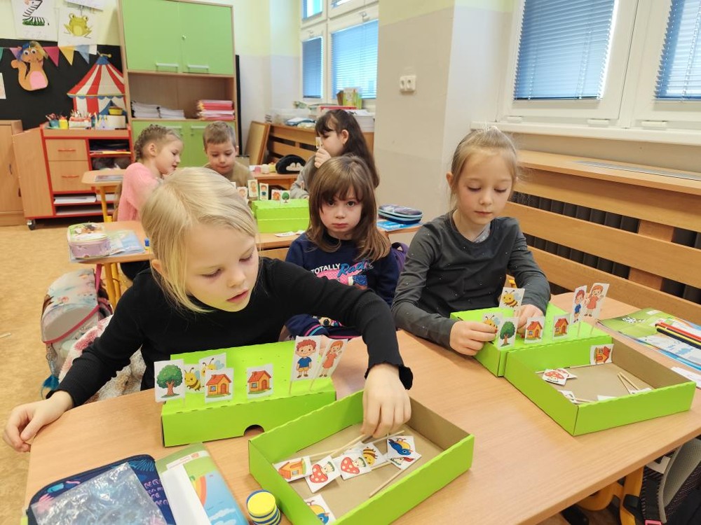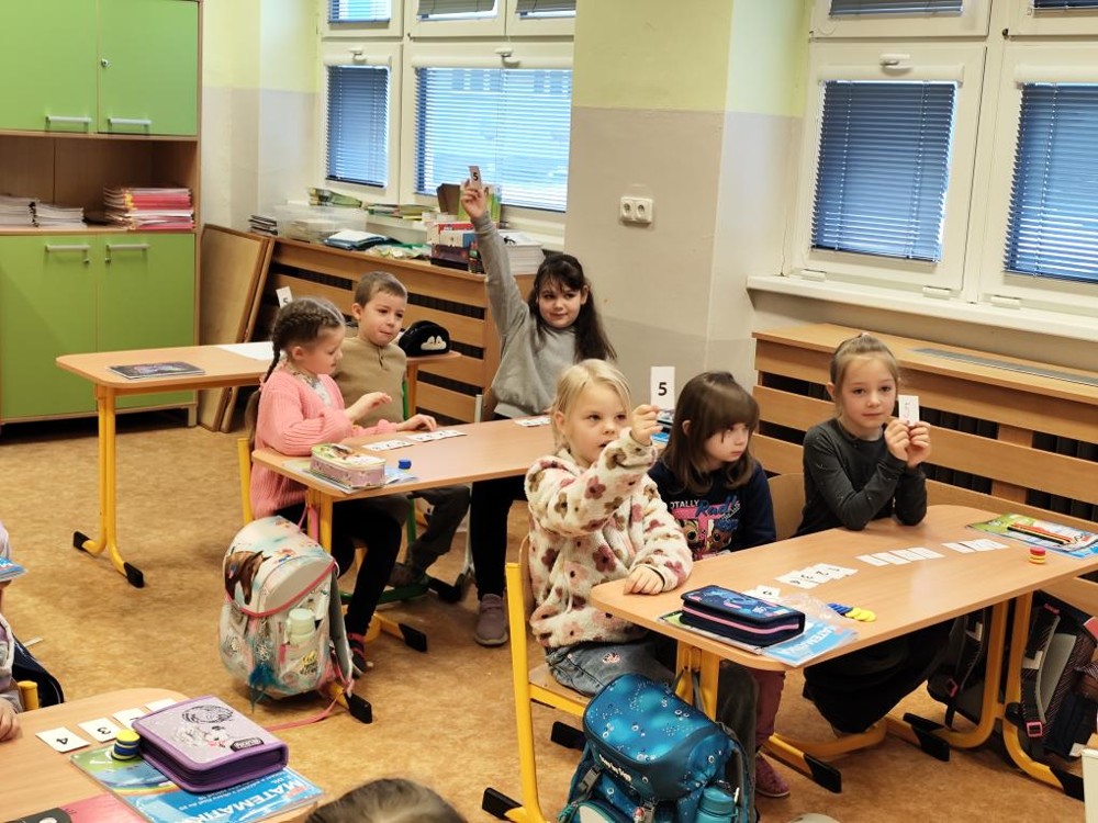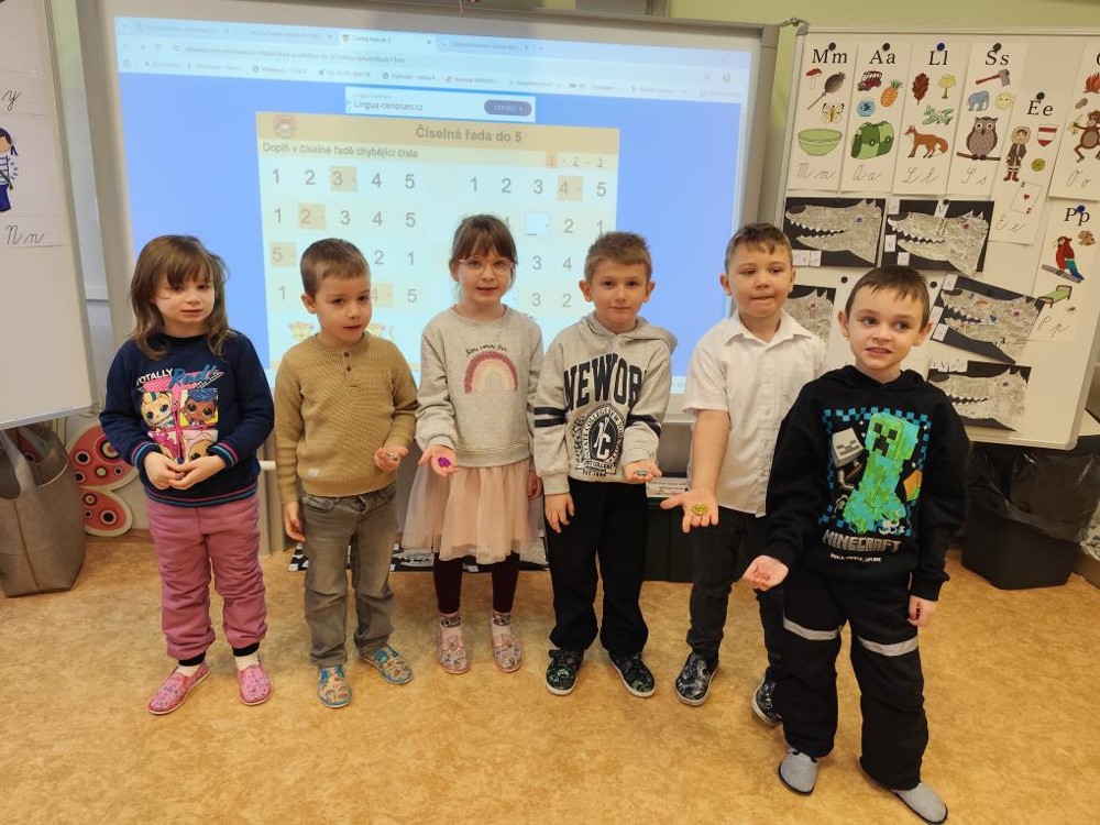 Naši předškoláci dnes navštívili třídu 1A a 1B na ZŠ Buzulucká v Teplicích a aktivně se zúčastnili výuky matematiky a českého jazyka. Za správné výsledky v matematice si vysloužili od paní učitelky blýskavý žetonek na památku.