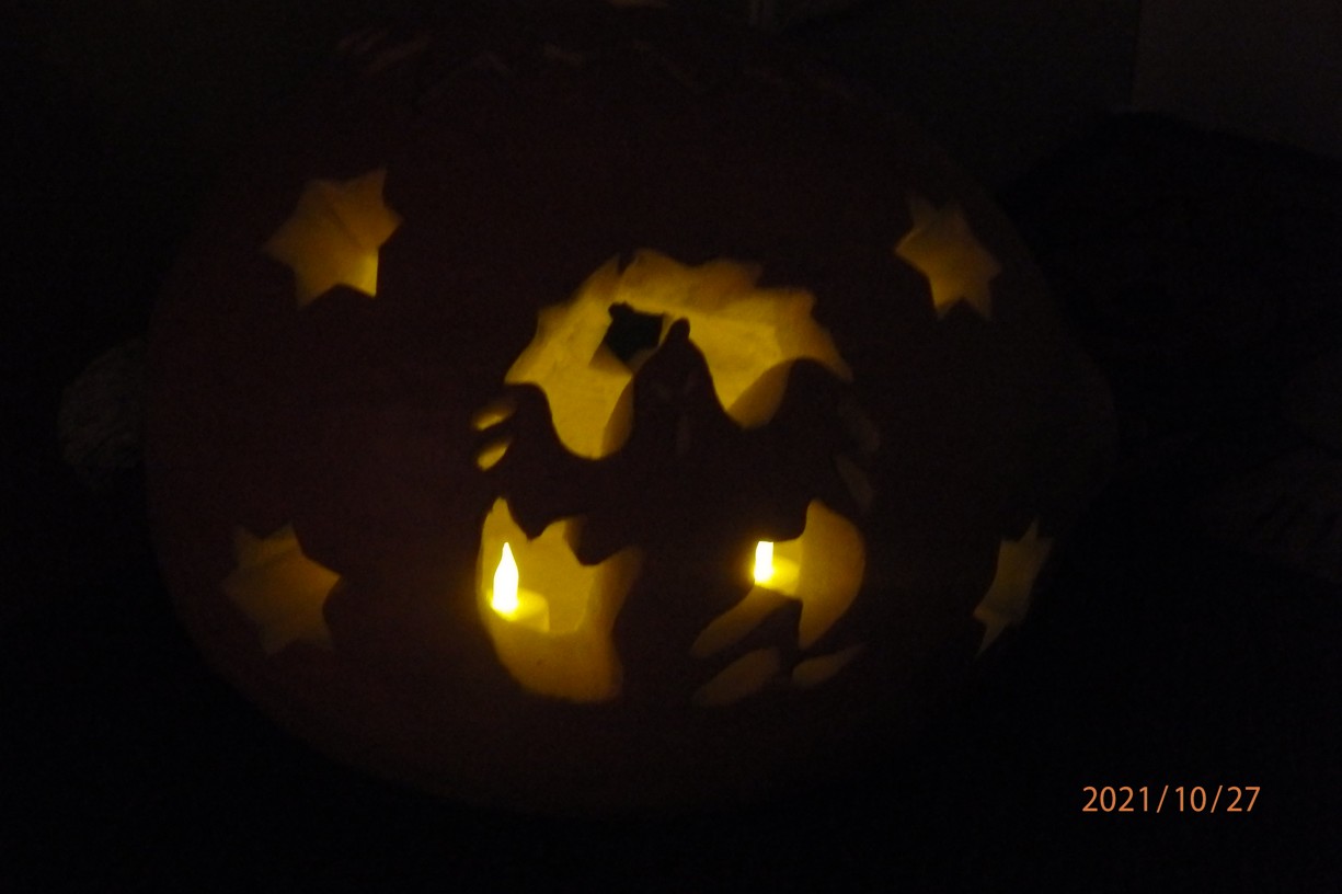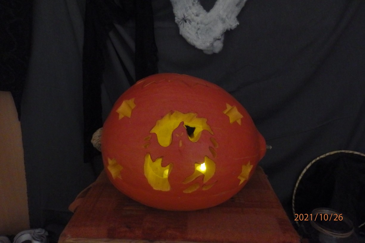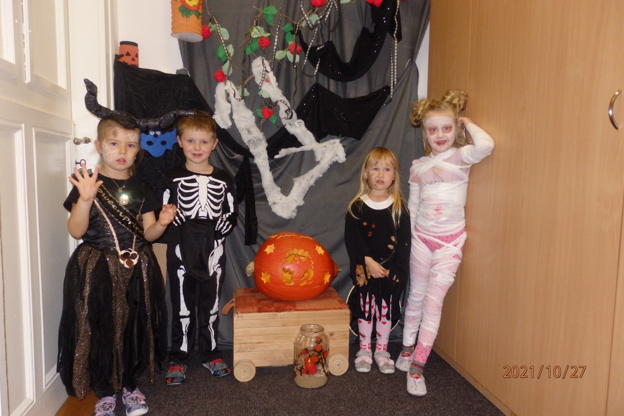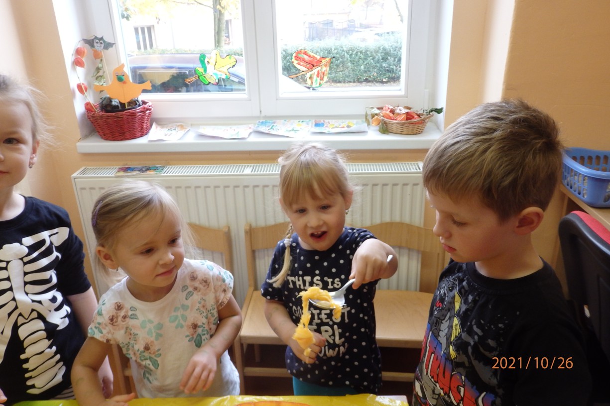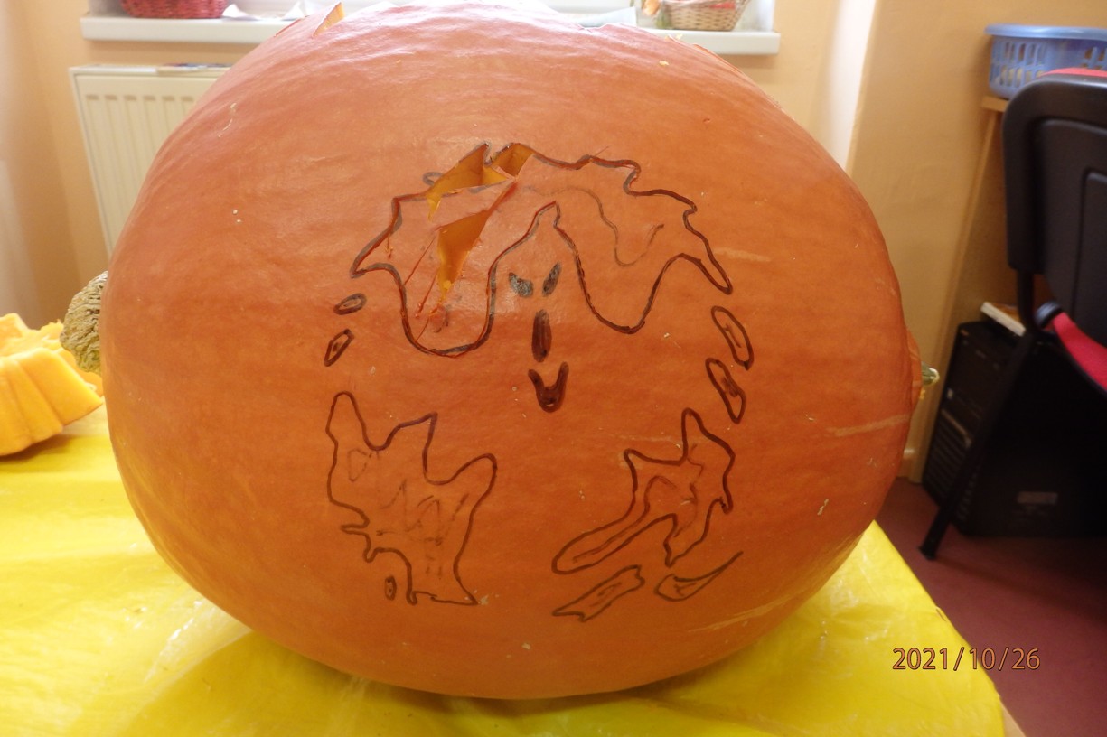 Na zahrádce nám vyrostla veliká dýně. Společně jsme si ji vydlabali, aby nám ozdobila naší školku a také nám mohla svítit při malém strašidelném karnevalu.