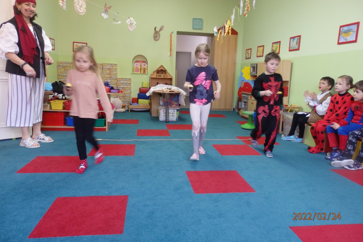 Karneval ve školce si všechny děti užívaly a pod vedením strašlivých pirátů si zatančily, soutěžily a také smlsly na dobrotách. Děkujeme všem maminkám, které dětem pečlivě připravily karnevalové převleky.