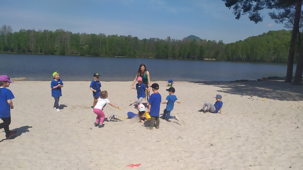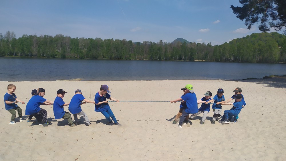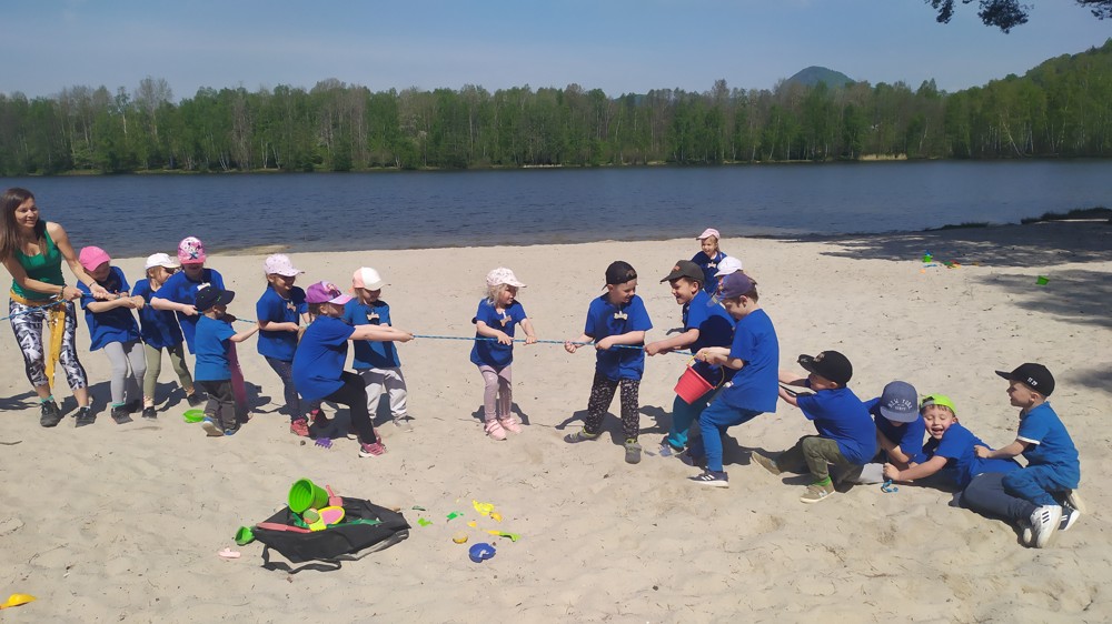 Hurá, konečně se nám podařilo dobýt a obsadit největší přístav ve Sloupu. Celé dopoledne si tak mohli naši piráti hledat mušle v písku, stavět hrady, poměřovat síly mezi jednotlivými mužstvy a také vylepšovat svoji fyzičku.