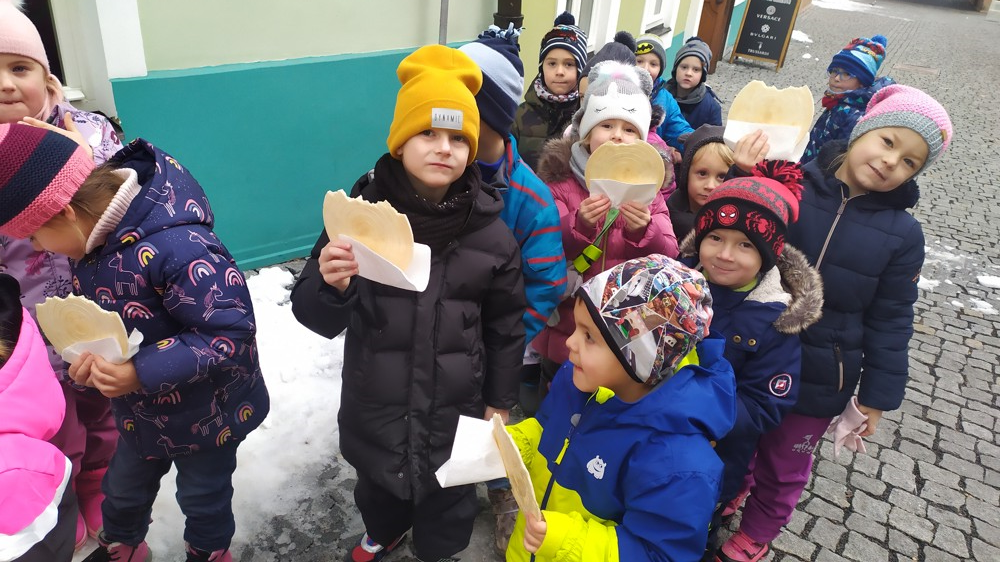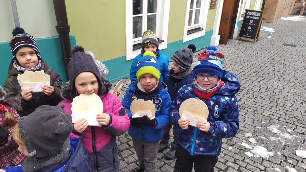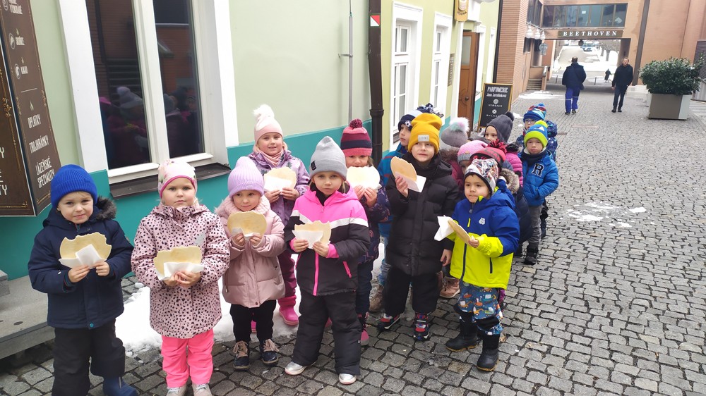 Navštívili jsme Mýdlárnu u Zámku, kde jsme se dozvěděli, jak se mýdlo vyrábí. Děti si mohly sami vykrojit tvar, který se jim nejvíce líbil. Při procházce městem mohly děti obdivovat krásný betlém na náměstí a prohlédnout si vánoční výzdobu. Výlet jsme zakončili sladkou tečkou v podobě teplé lázeňské oplatky, a to byla opravdová mňamka.