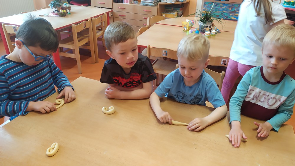 Byl Zelený čtvrtek a ve školce jsme pekli velikonoční jidáše. Dětem se povedly a také si na nich moc pochutnaly.
