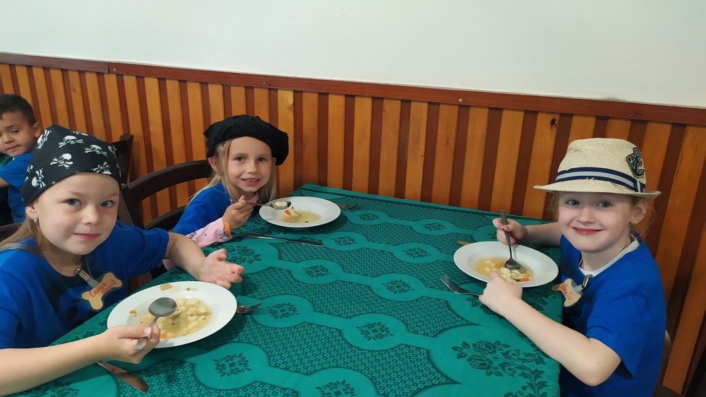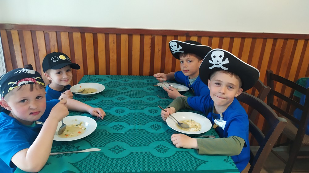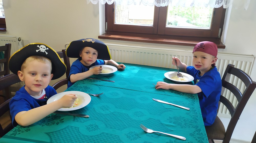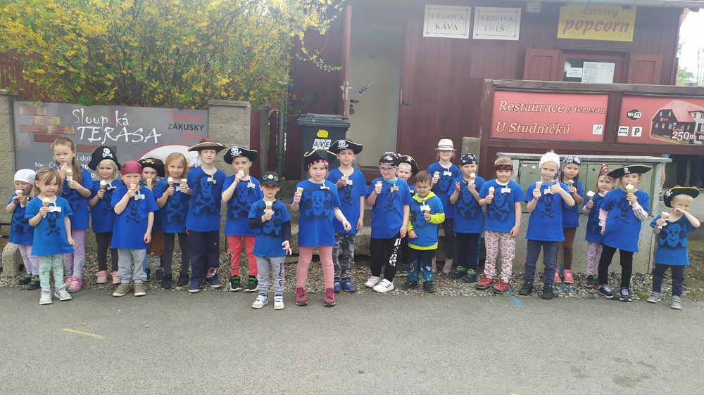 Je za námi první den pirátské výpravy, plný dobrodružství a zábavy. Naši piráti již obsadili území zdejší cukrárny a pochutnali si na sloupské zmrzlině. Všichni jsou spokojení a do svých kajut zalezli s úsměvem na tváři.