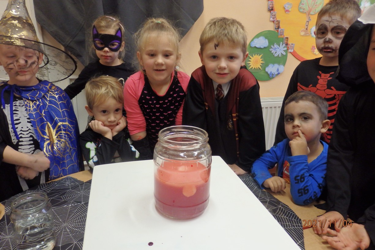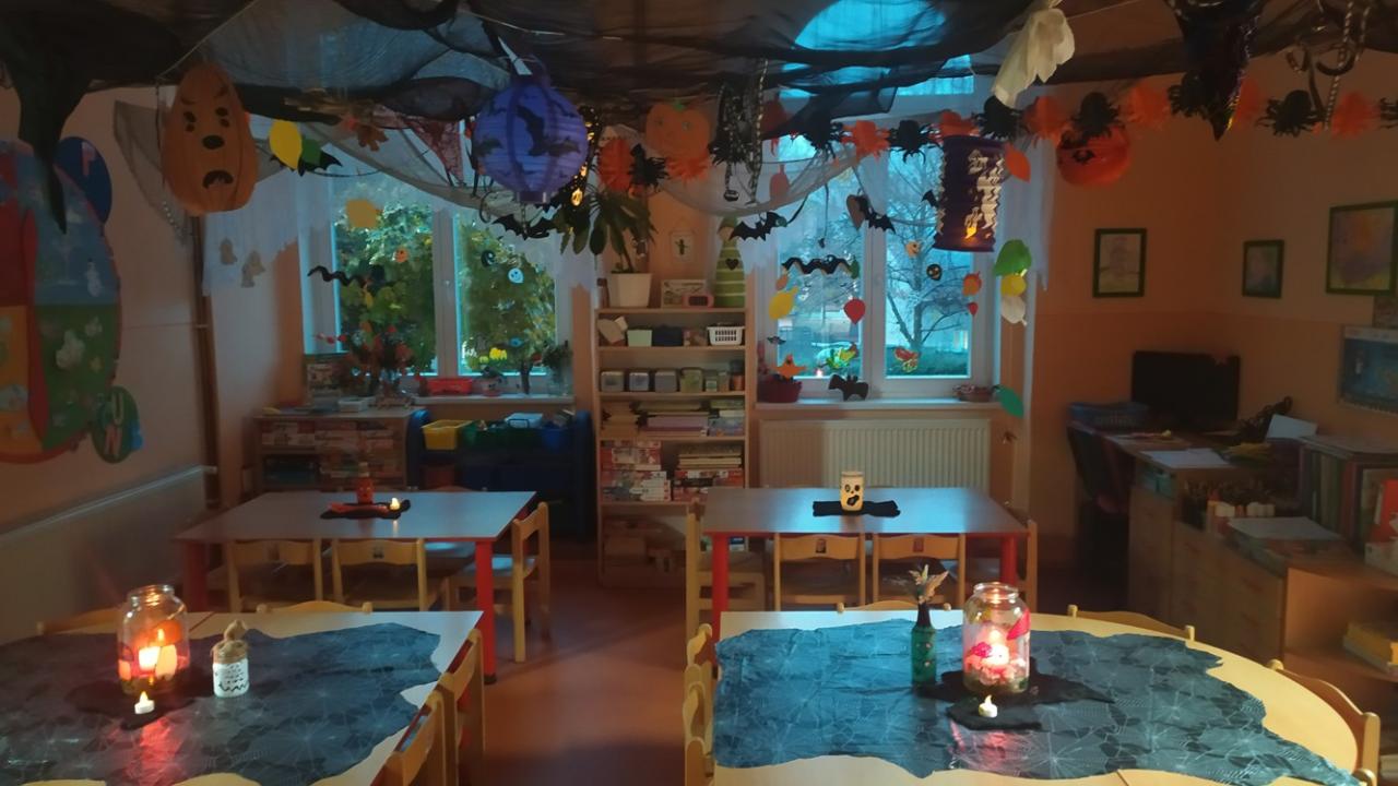 Od rána ve školce pobíhala a poletovala samá strašidýlka, která si svůj strašidelný rej moc užívala. Poměřovala své síly při strašidelných dovednostech, tančila a také si vařila kouzelný lektvar.