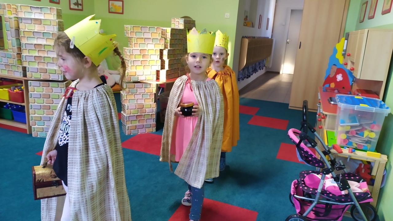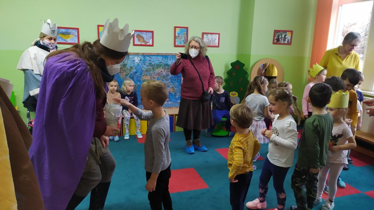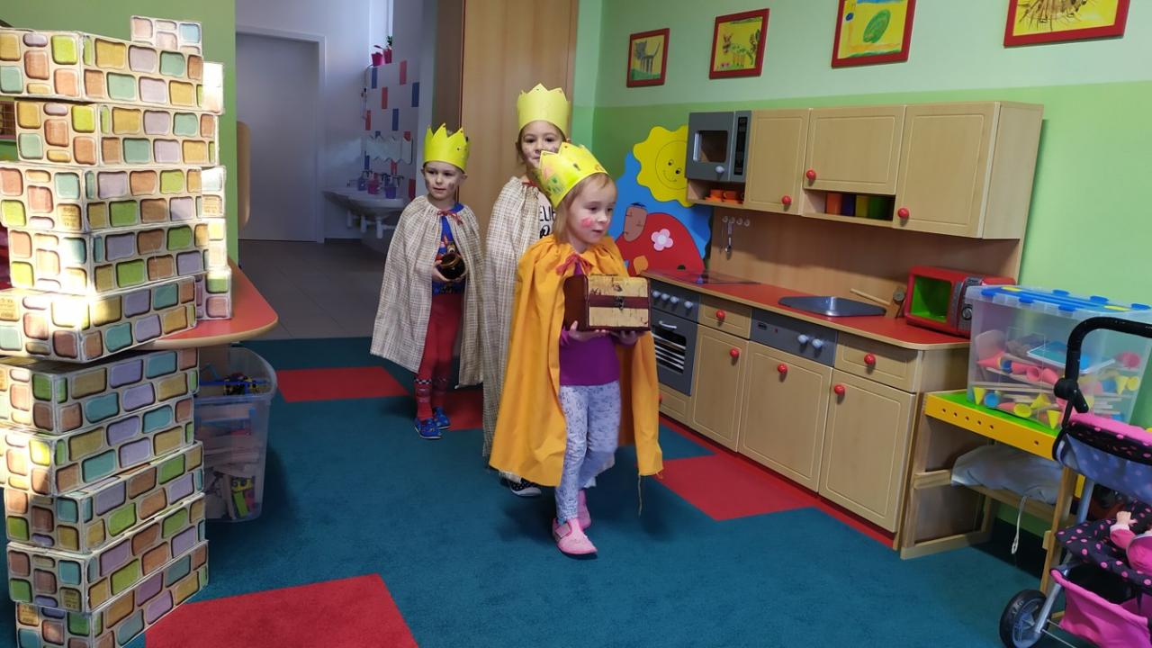 V naší školce každé dítě ví, kdo je Kašpar, Melichar a Baltazar. Děti vyráběly a zdobily papírové koruny, zpívaly My Tři králové, na Tři krále si hrály a čekaly, kdy je opravdoví králové navštíví. Společně jsme si s nimi zazpívali a děti přispěly korunkami do kasičky na charitativní sbírku.