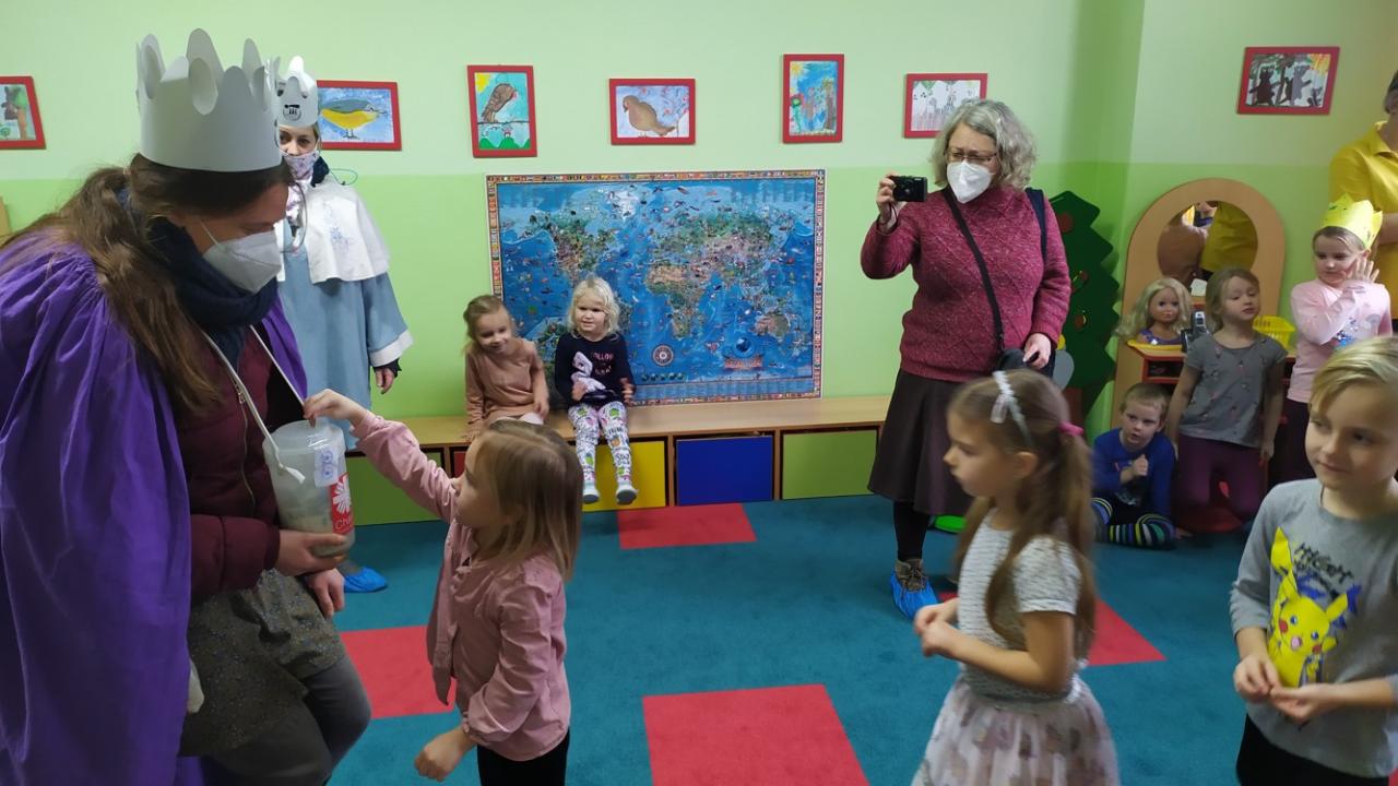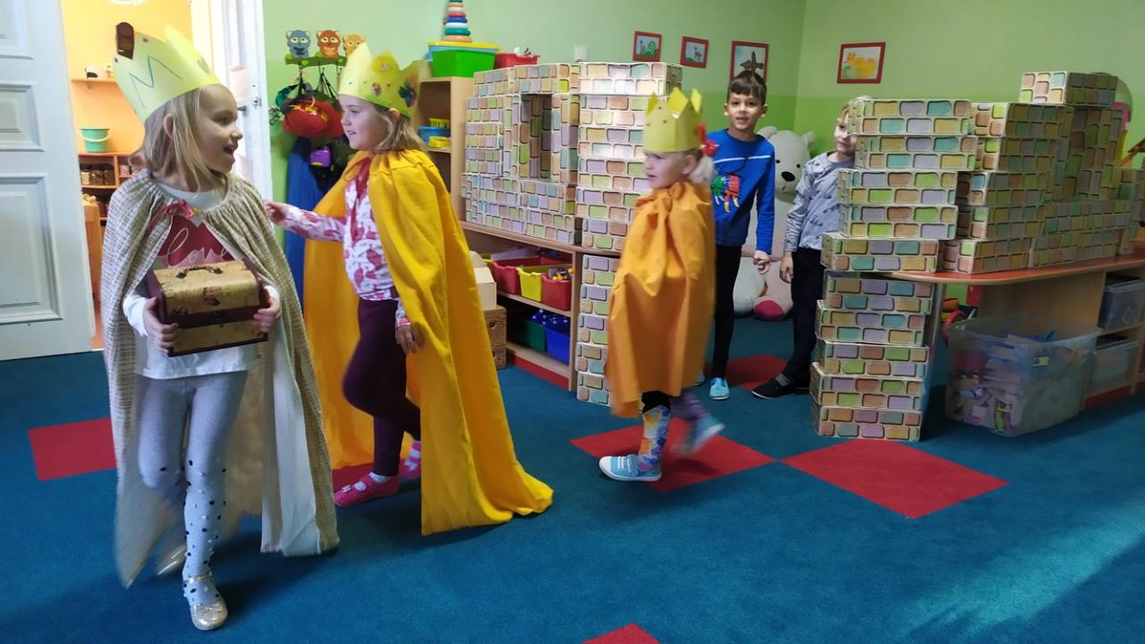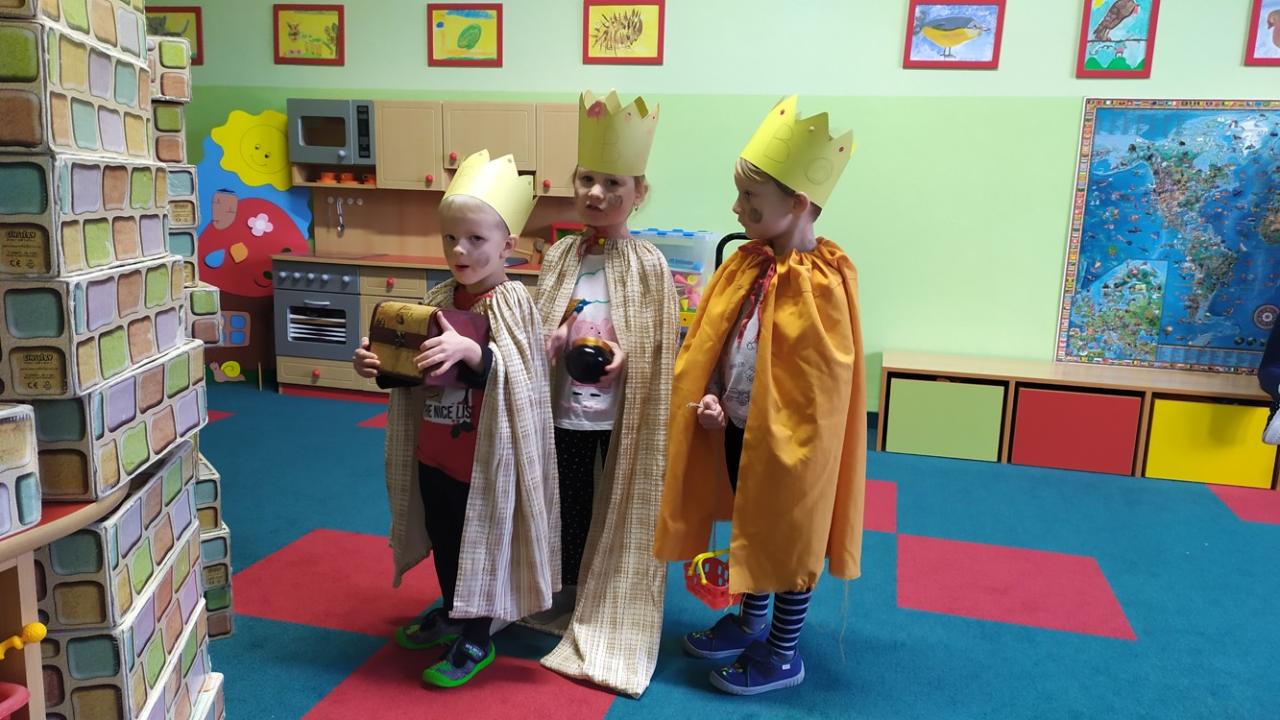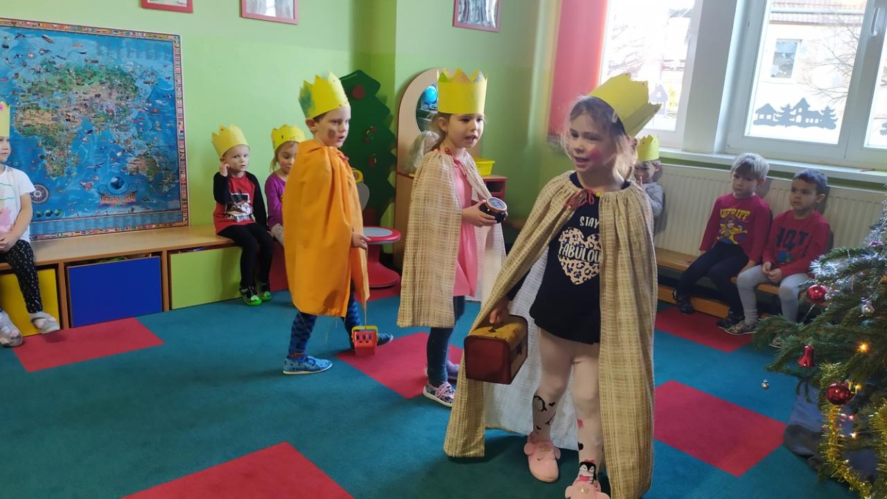 V naší školce každé dítě ví, kdo je Kašpar, Melichar a Baltazar. Děti vyráběly a zdobily papírové koruny, zpívaly My Tři králové, na Tři krále si hrály a čekaly, kdy je opravdoví králové navštíví. Společně jsme si s nimi zazpívali a děti přispěly korunkami do kasičky na charitativní sbírku.