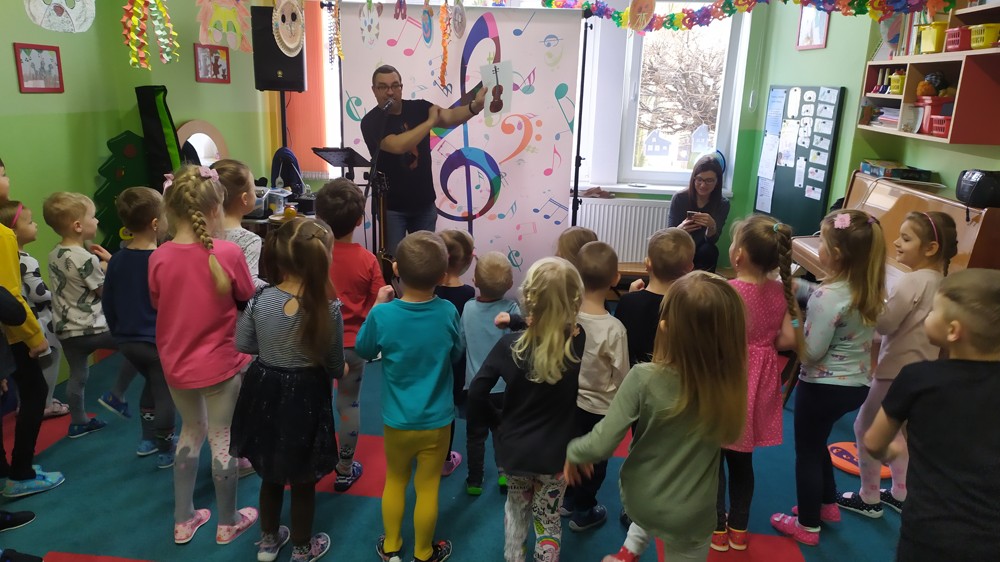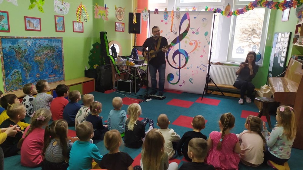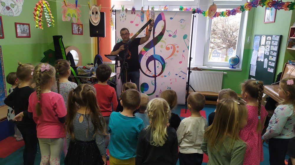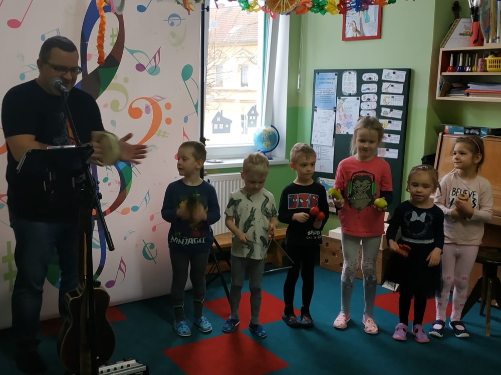 Seznámil děti s kytarou a některými strunnými nástroji, zahrál na děšťové hole, na nástroj Didgeridoo (dechový nástroj australských domorodců), foukací harmoniku a spoustu rytmických nástrojů. Na závěr děti vytvořily orchestr a každý si zahrál na některý rytmický nástroj, společně si zazpívaly a zatančily.