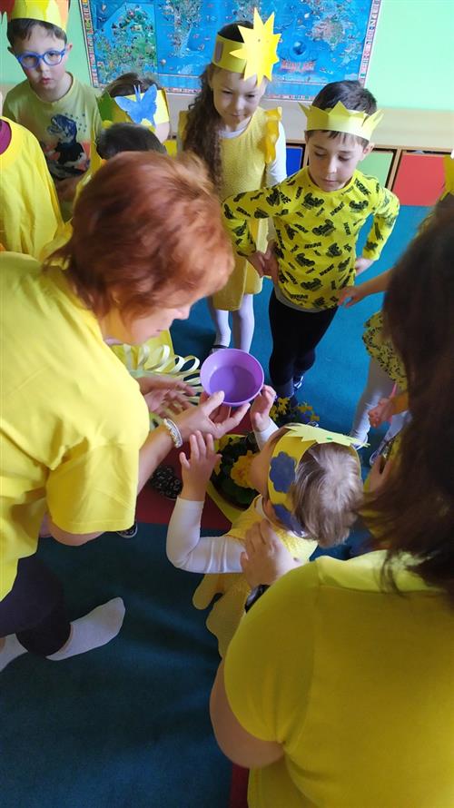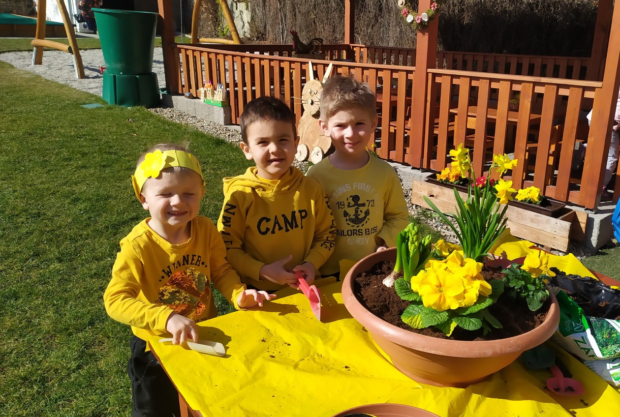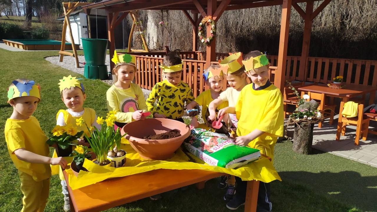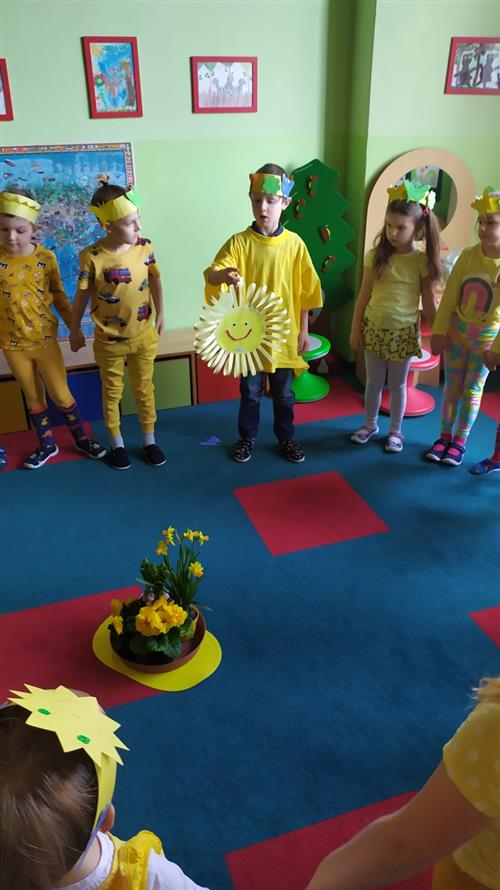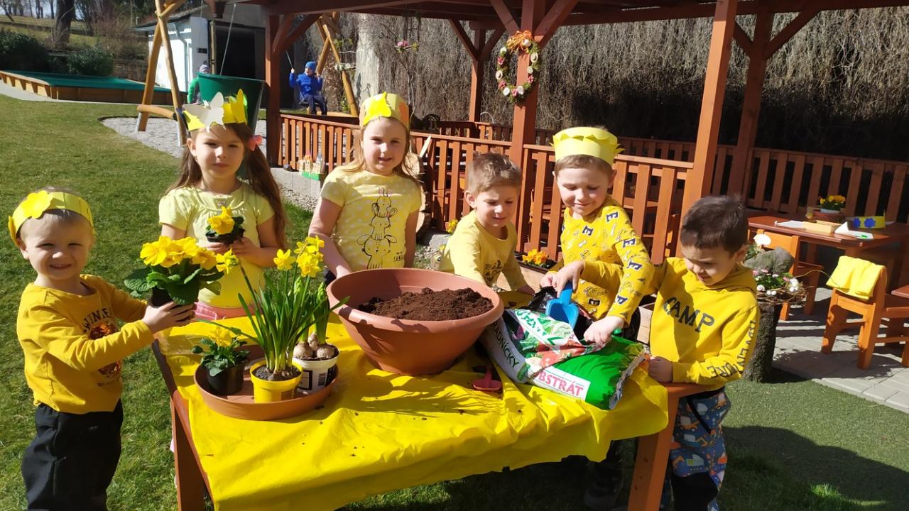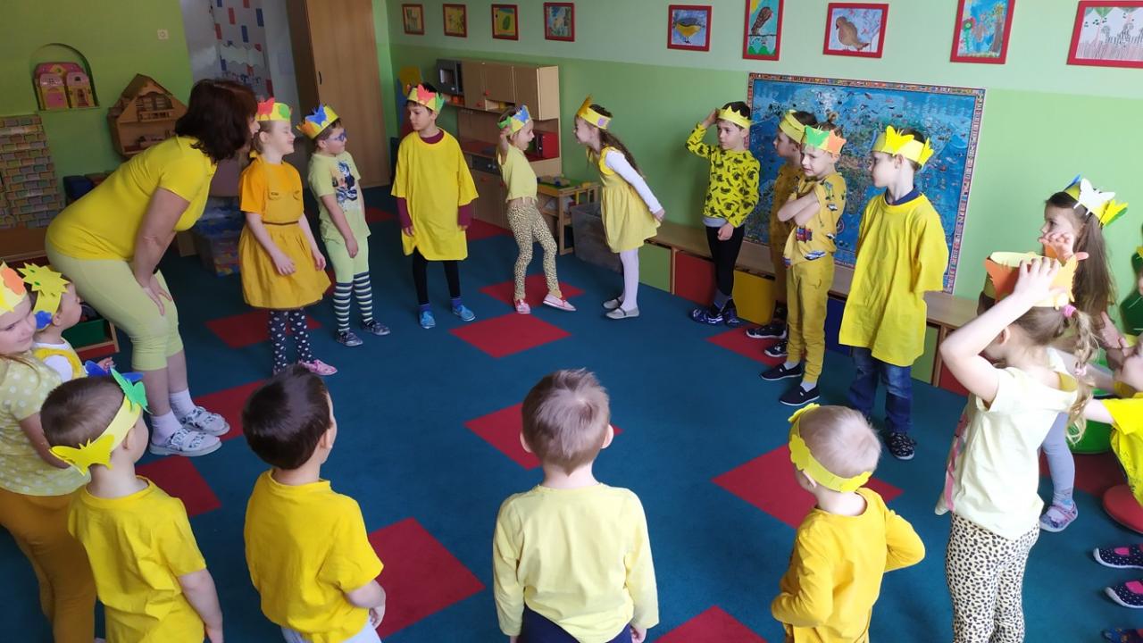Ve školce byl žlutý den a všechny děti, ve žlutém oblečení, přivítaly jaro písničkou, básničkou i tanečkem.