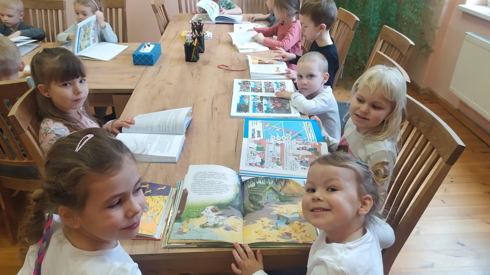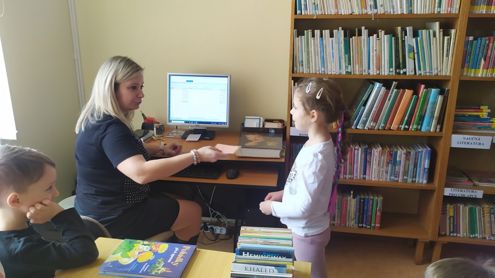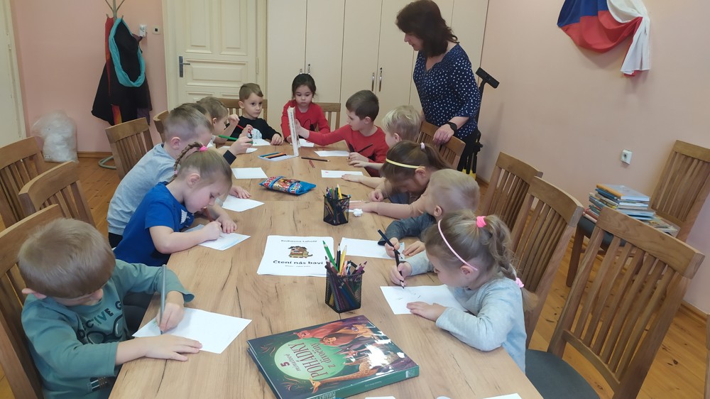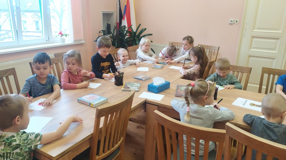 Děti si mohly vyzkoušet správný postup při půjčení i navrácení knihy, společně si povídaly nad pohádkovými knihami a nakreslily pohádkové obrázky, které nyní zdobí knihovnu.