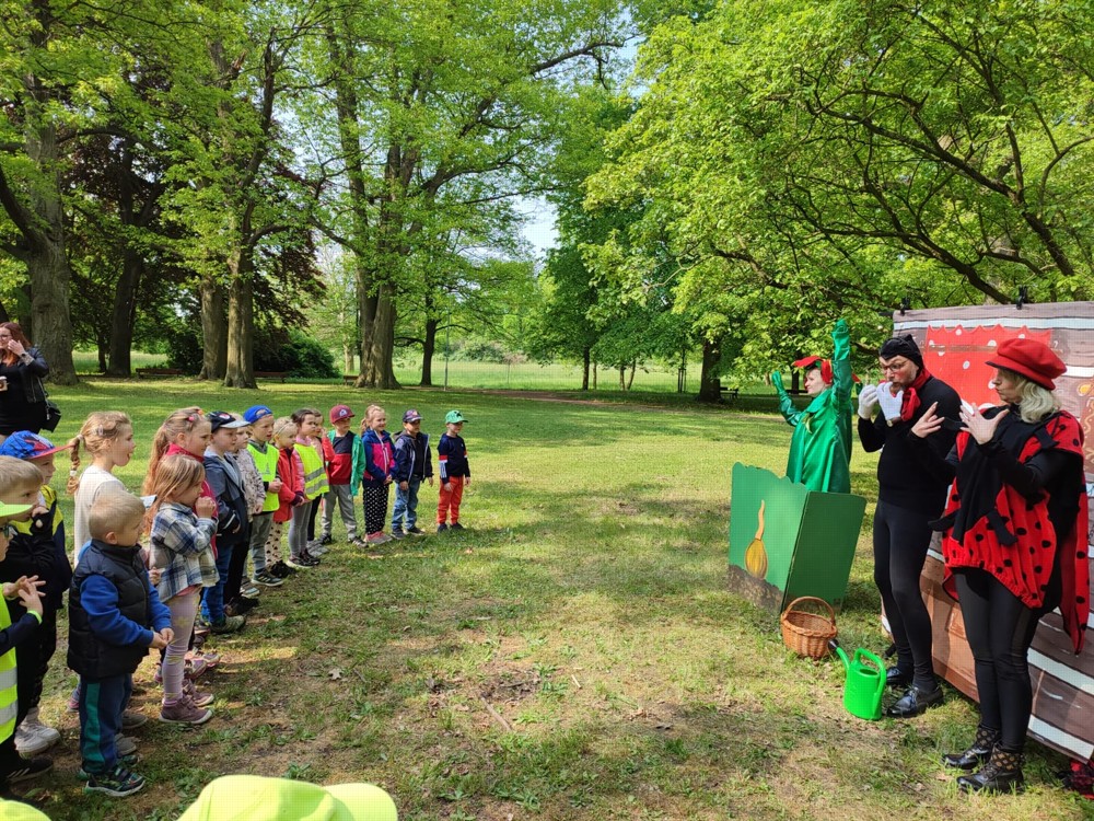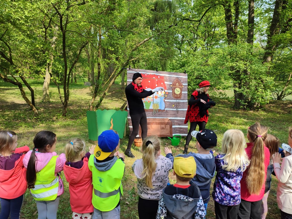 V Zámecké zahradě připravilo Divadlo M pro děti zábavné dopoledne s pohádkou o Berušce a Ferdovi. Do školky se děti vracely spokojené a plné krásných zážitků.